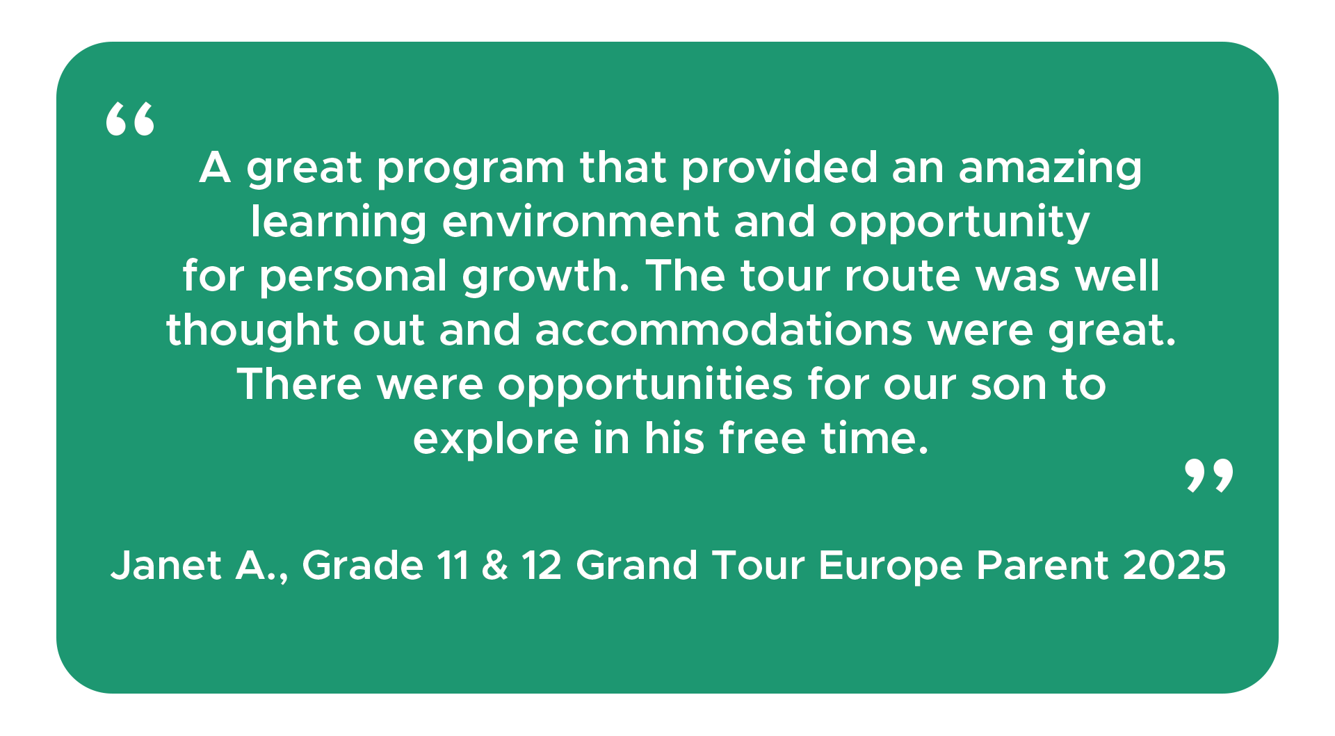 - Optional excursions