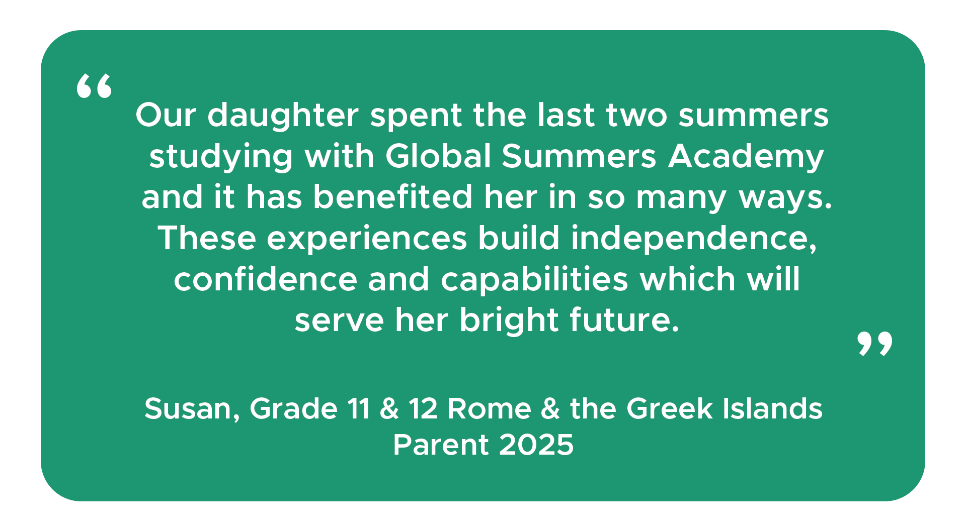 Finish the program in Athens and discover both classical and modern Greece. Students will climb the Acropolis to explore several iconic and historically significant monuments, including the Parthenon and the Temple of Athena Nike. Athens is not only known for its rich history, but also its charming shops, vibrant cafes and delicious restaurants. Immerse yourself in Greece’s extensive history by visiting local museums and galleries, with the option to head to Olympia, the site of the first Olympic Games. Enjoy your farewell banquet with delicious Greek food and take in all the breathtaking views of Athens.