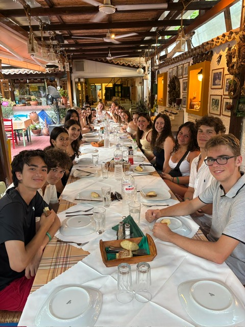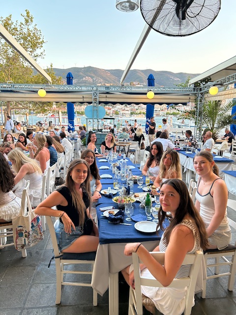 Group B has now set sail for their 3 day sailing adventure. From the photos we are already seeing their first day on Wednesday was a fantastic day of sailing, tanning, and swimming, followed by a wonderful dinner amongst orange trees. Essentially, Group B is retracing Group A’s journey to Poros. Group A is now settled into the Goldenview Hotel in Poros and getting back to focus on classes, then sailing, and swimming! We will all meet up again on Saturday afternoon in Kalamata. Students are excited to see each other again. We are officially at the half way point tomorrow, more to come in our next blog with mid-term reflections.