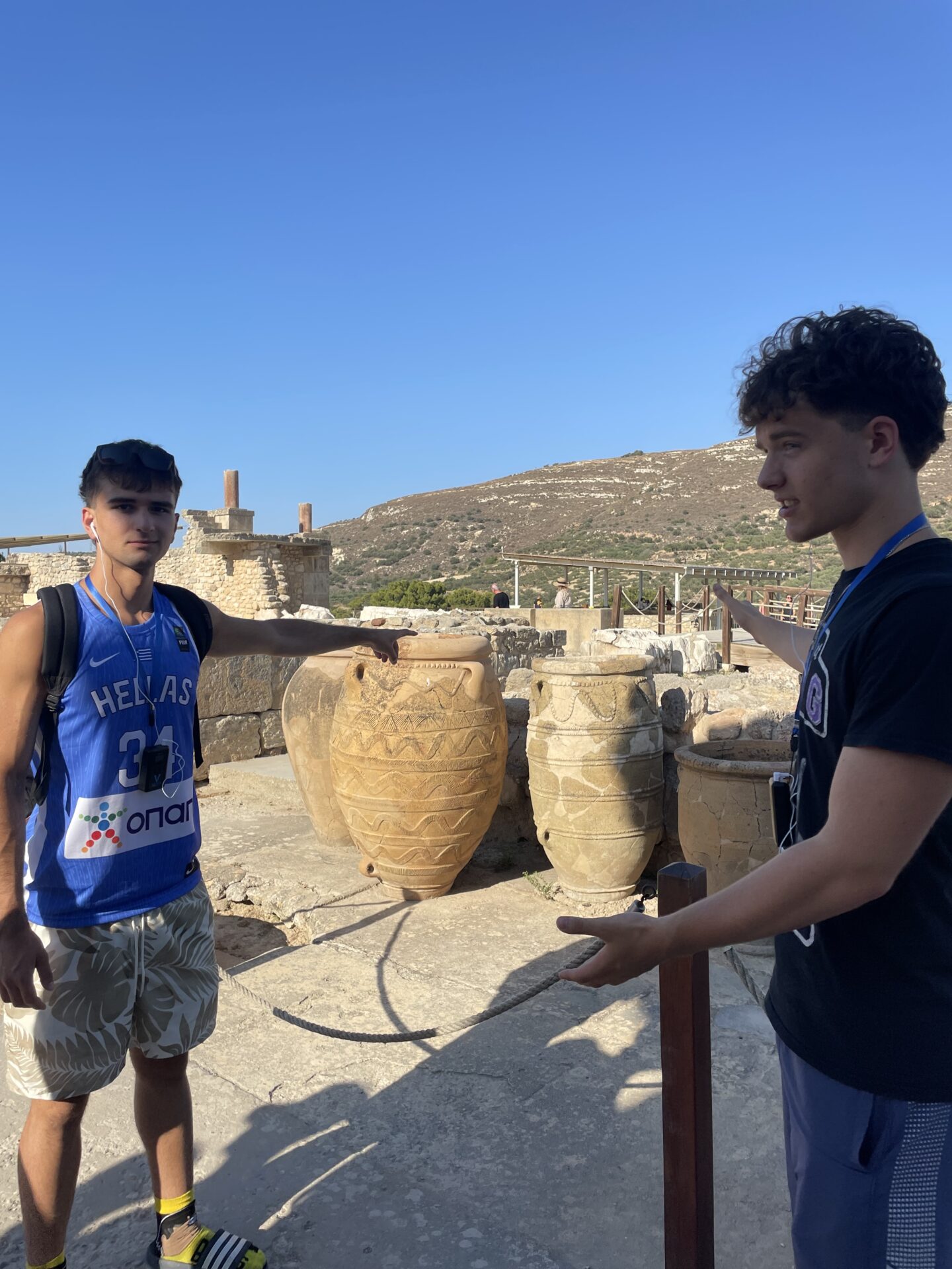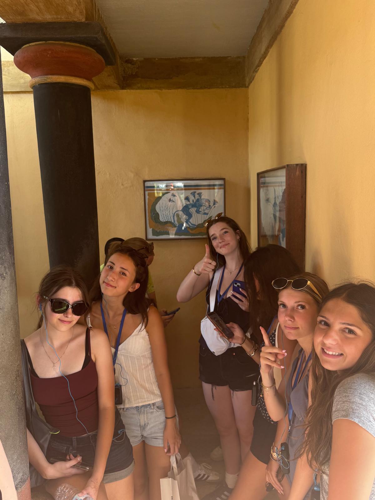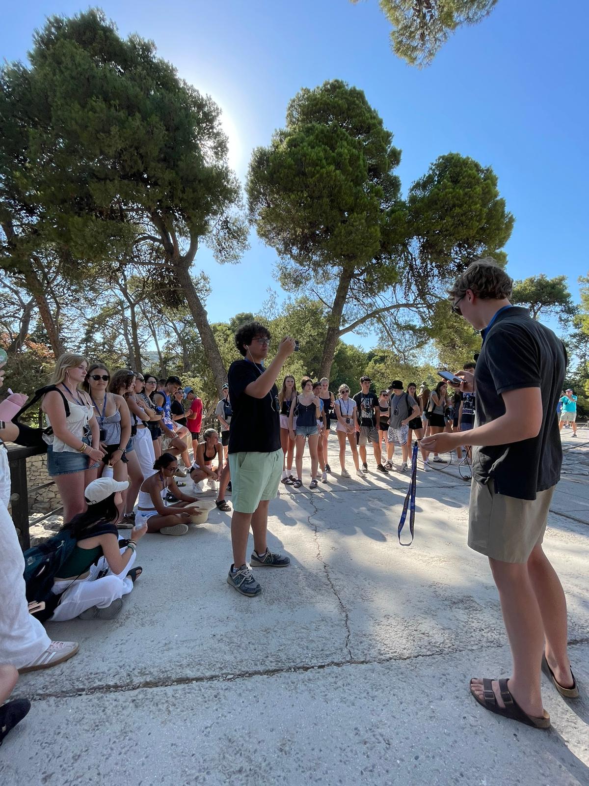 EJ’s birthday kicked off with the boys pitching in to decorate before room checks. After a good breakfast at the hotel, everyone headed to their morning classes. The biology and classical civilization classes hopped on an early bus to visit museums; the biology class explored the Natural History Museum of Crete, while the classical civilization class toured the Heraklion Archaeological Museum. Later, the English classes joined in, and the whole group made their way to Knossos Palace for a guided walking tour. To top off the day, they sang ‘Happy Birthday’ to EJ and enjoyed a delicious dinner back at the hotel.