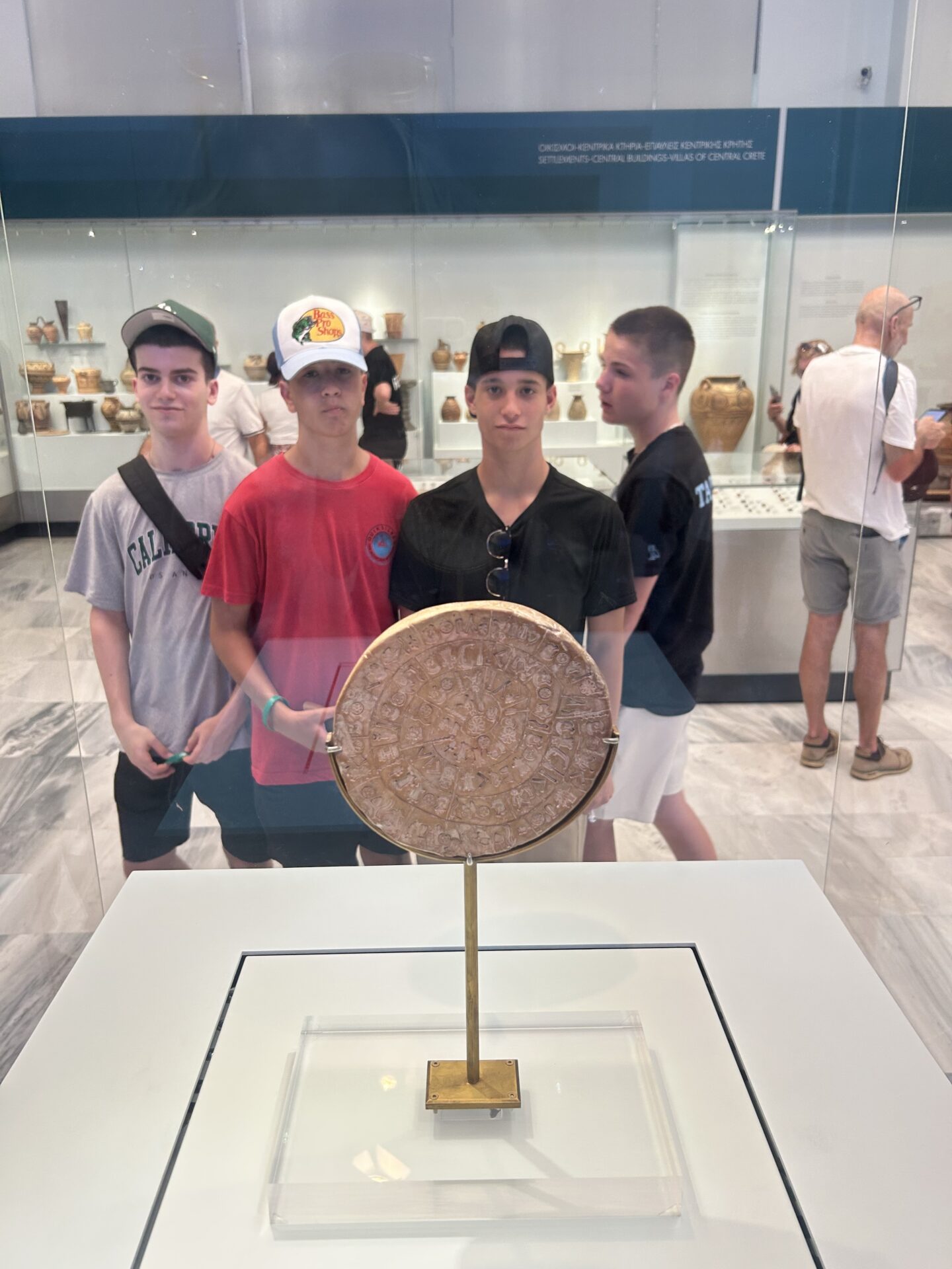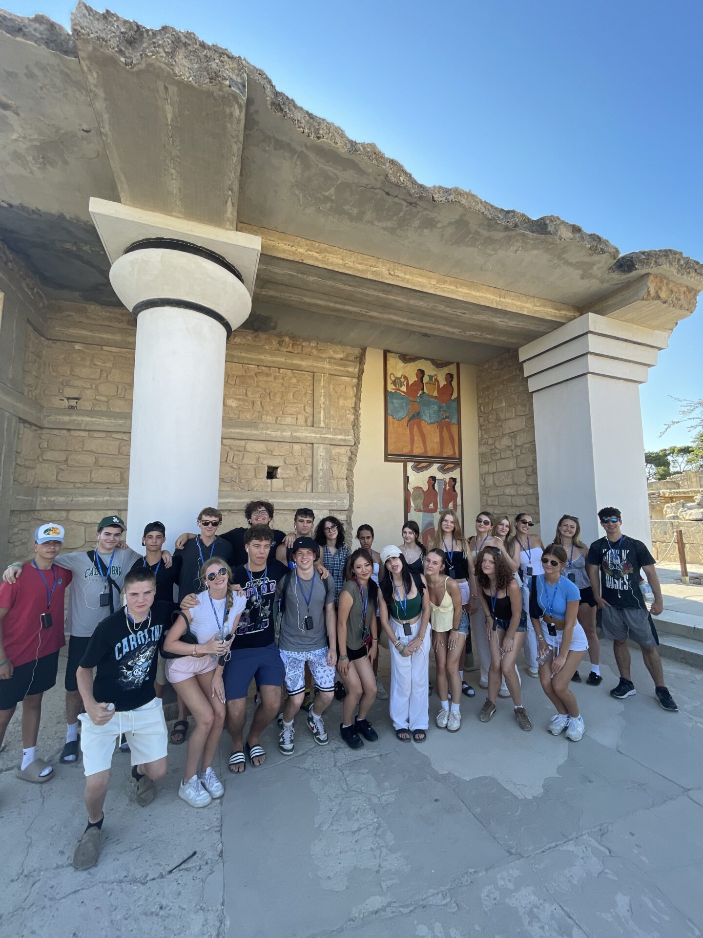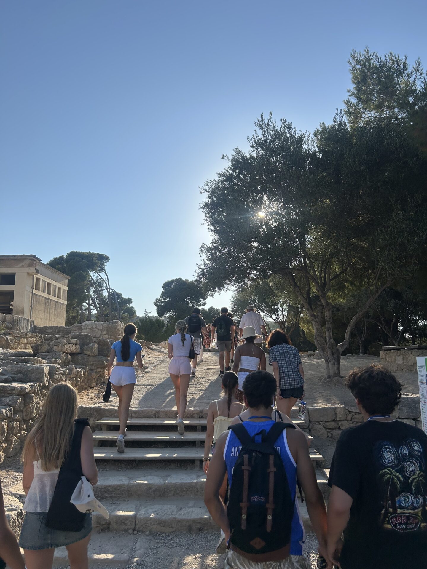 EJ’s birthday kicked off with the boys pitching in to decorate before room checks. After a good breakfast at the hotel, everyone headed to their morning classes. The biology and classical civilization classes hopped on an early bus to visit museums; the biology class explored the Natural History Museum of Crete, while the classical civilization class toured the Heraklion Archaeological Museum. Later, the English classes joined in, and the whole group made their way to Knossos Palace for a guided walking tour. To top off the day, they sang ‘Happy Birthday’ to EJ and enjoyed a delicious dinner back at the hotel.