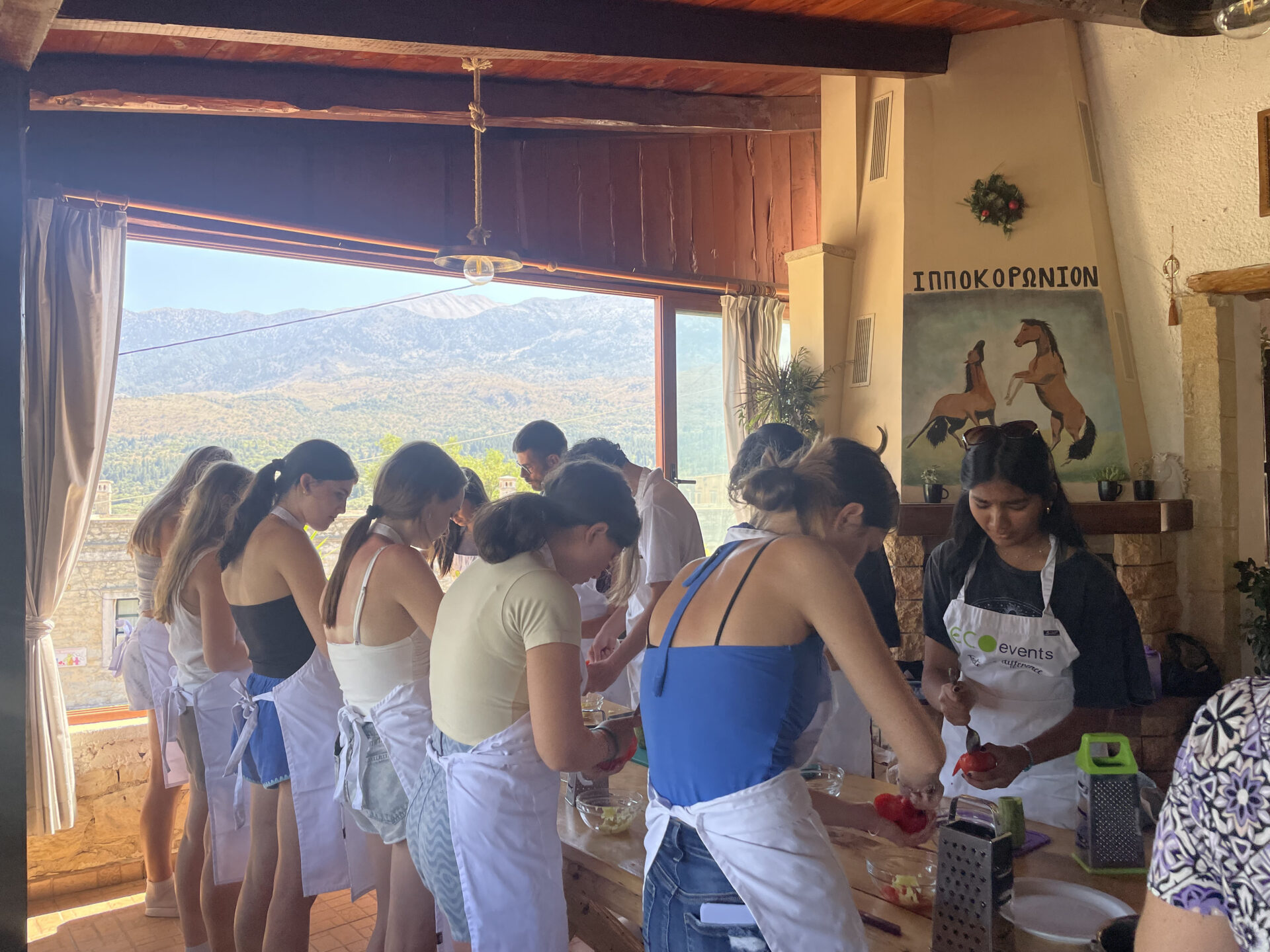 Today, as part of our cooking excursion, we embarked on a scenic two-hour drive to the charming village of Nippos, a beautiful mountain town nestled in the heart of Crete. Along the way, we were treated to breathtaking views of Crete’s majestic mountains and stunning beaches.