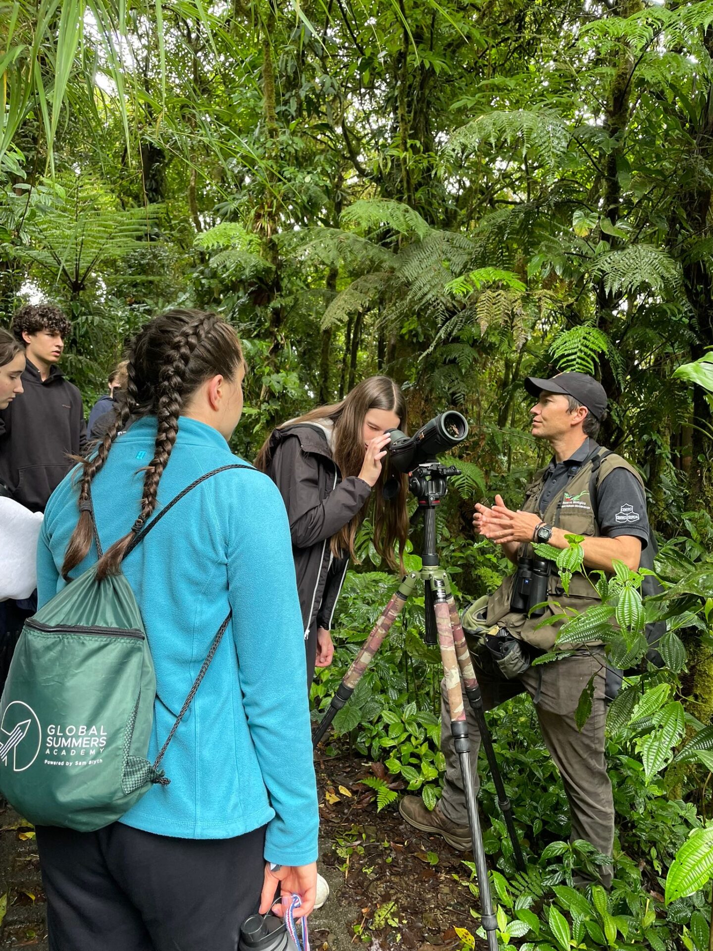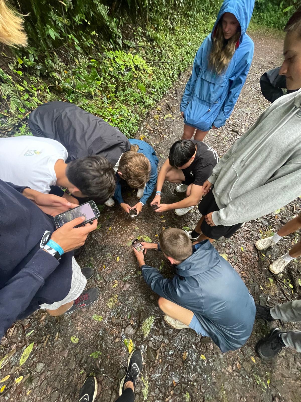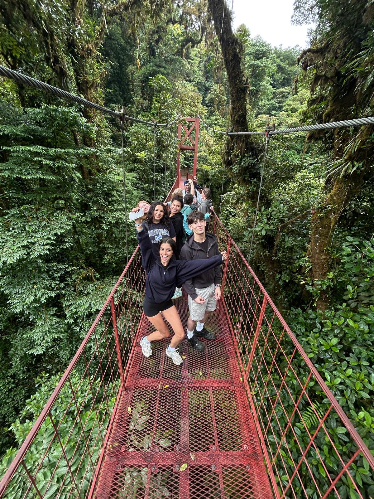 Split into smaller groups, we explored the lush rainforest with our guides, spotting birds, monkeys, and all kinds of amazing biodiversity. One of the highlights? The suspension bridge that looked like something straight out of a movie! We ended the hike at the Hummingbird Cafe, where dozens of hummingbirds zoomed around us- so close they nearly brushed our ears.