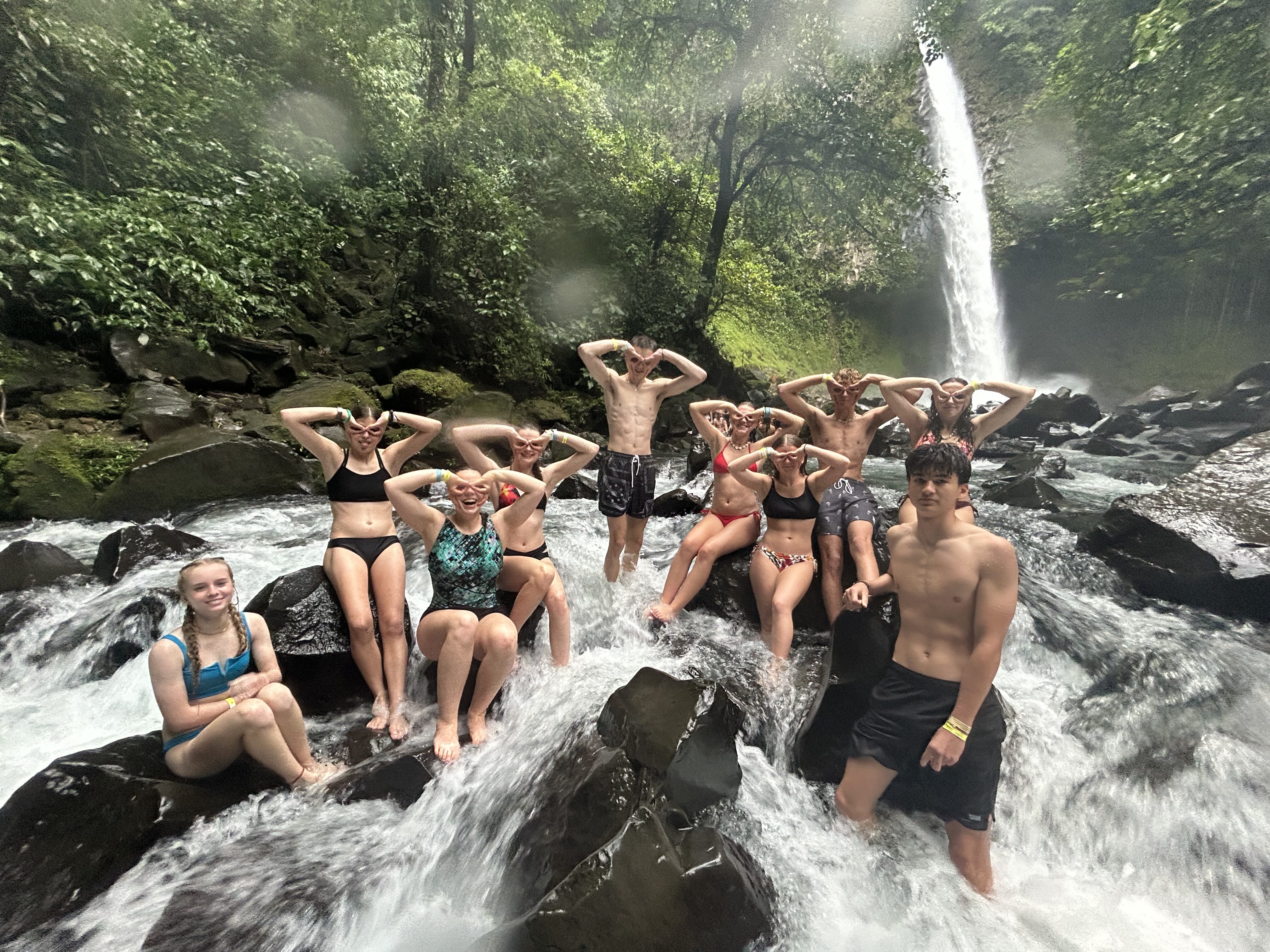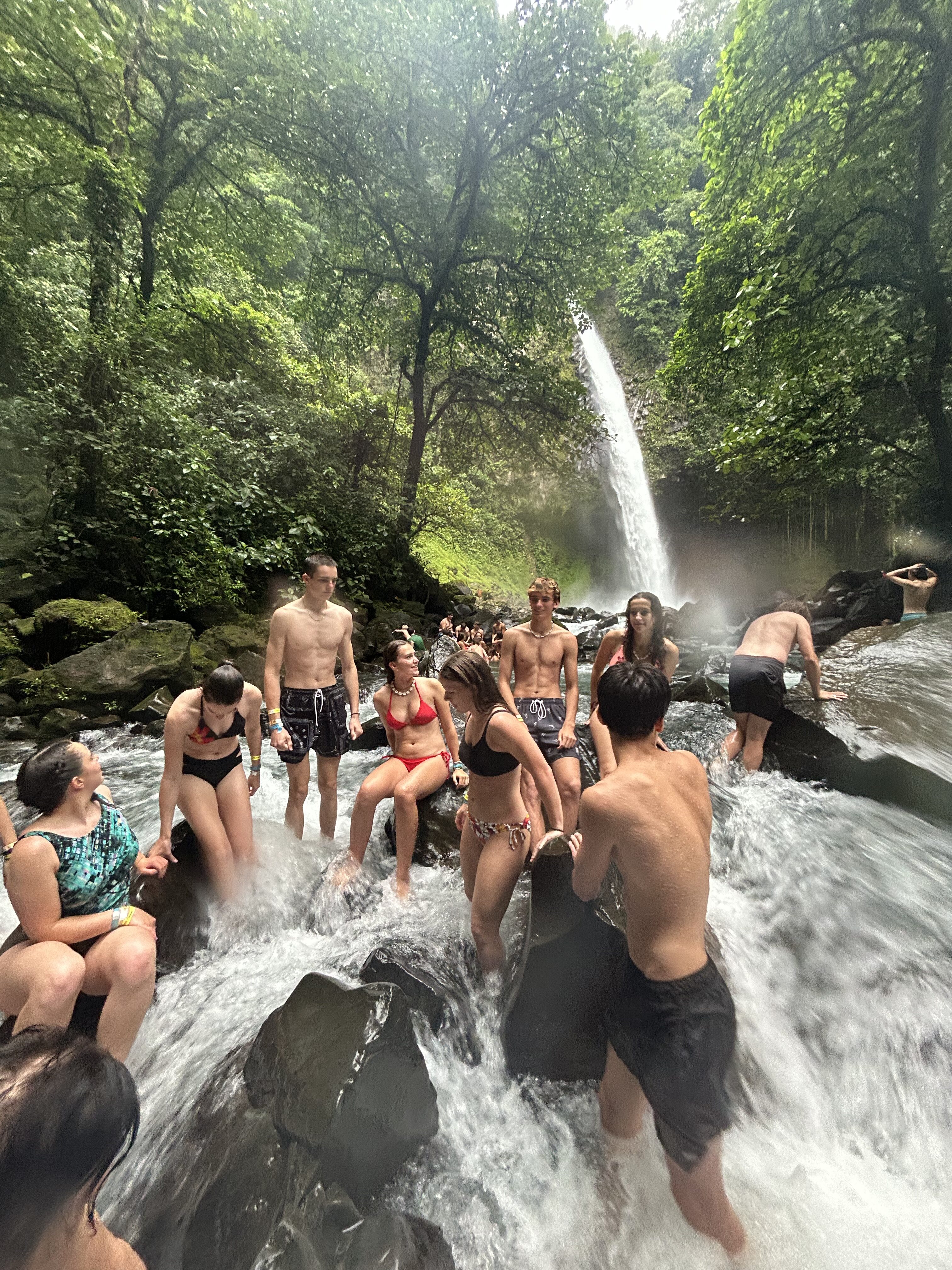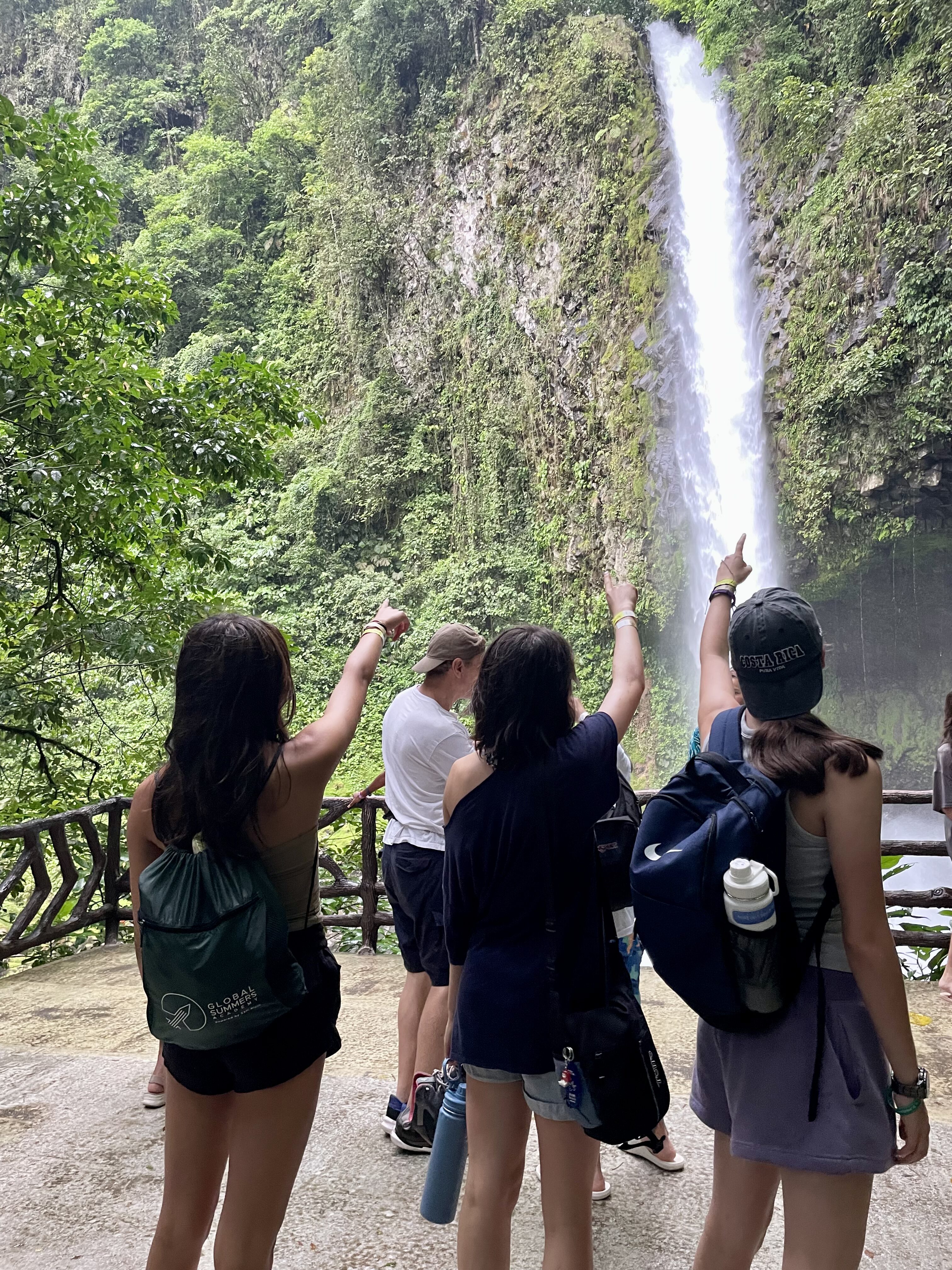 In the afternoon, we split into two groups. Some stayed back to enjoy more of the resort’s magic, while the others took on the challenge of La Fortuna Waterfall. After descending nearly 500 steps, students were treated to a scene straight out of Jurassic Park. (And yes, despite TLC’s advice, we definitely went chasing waterfalls.)