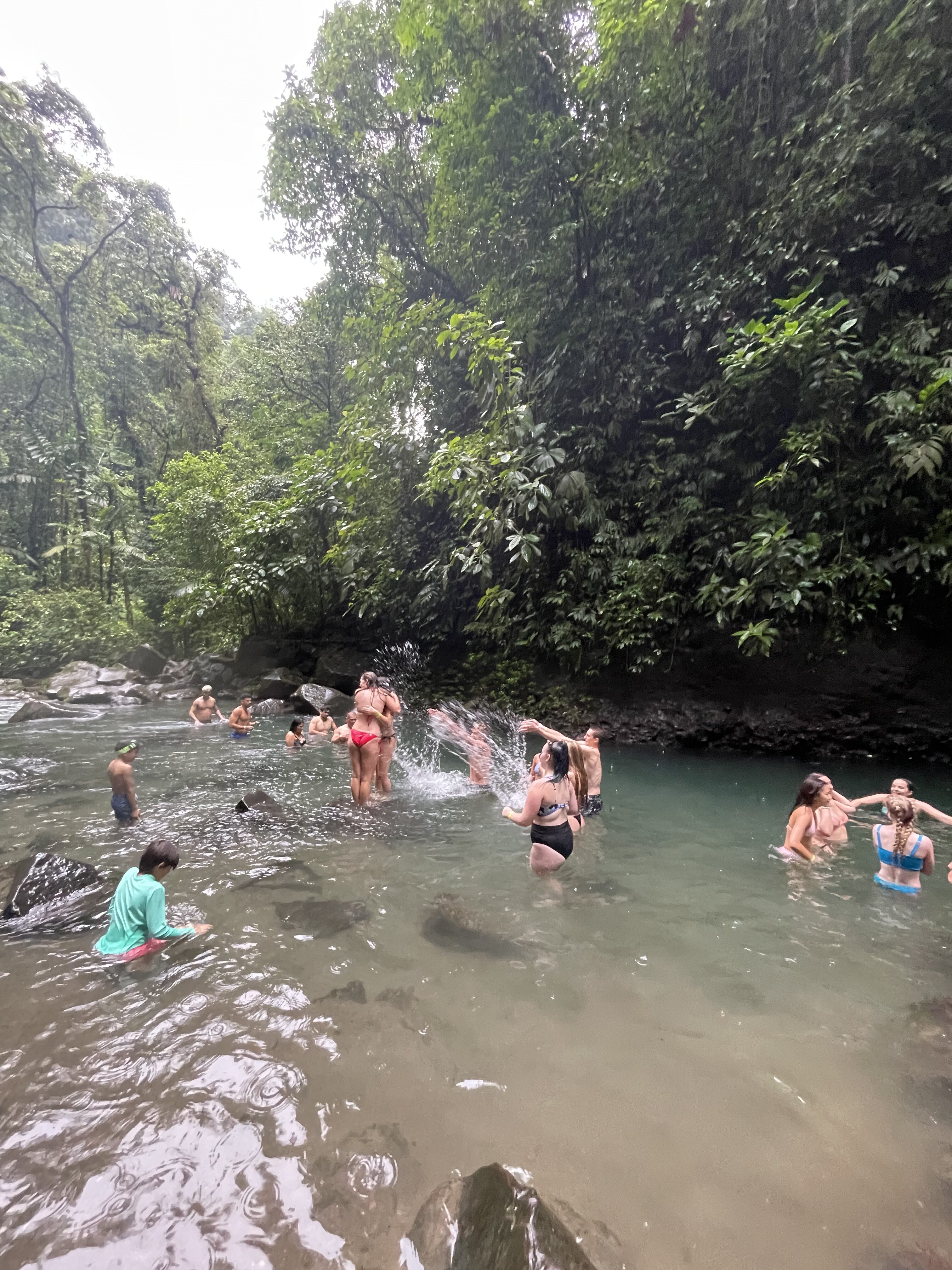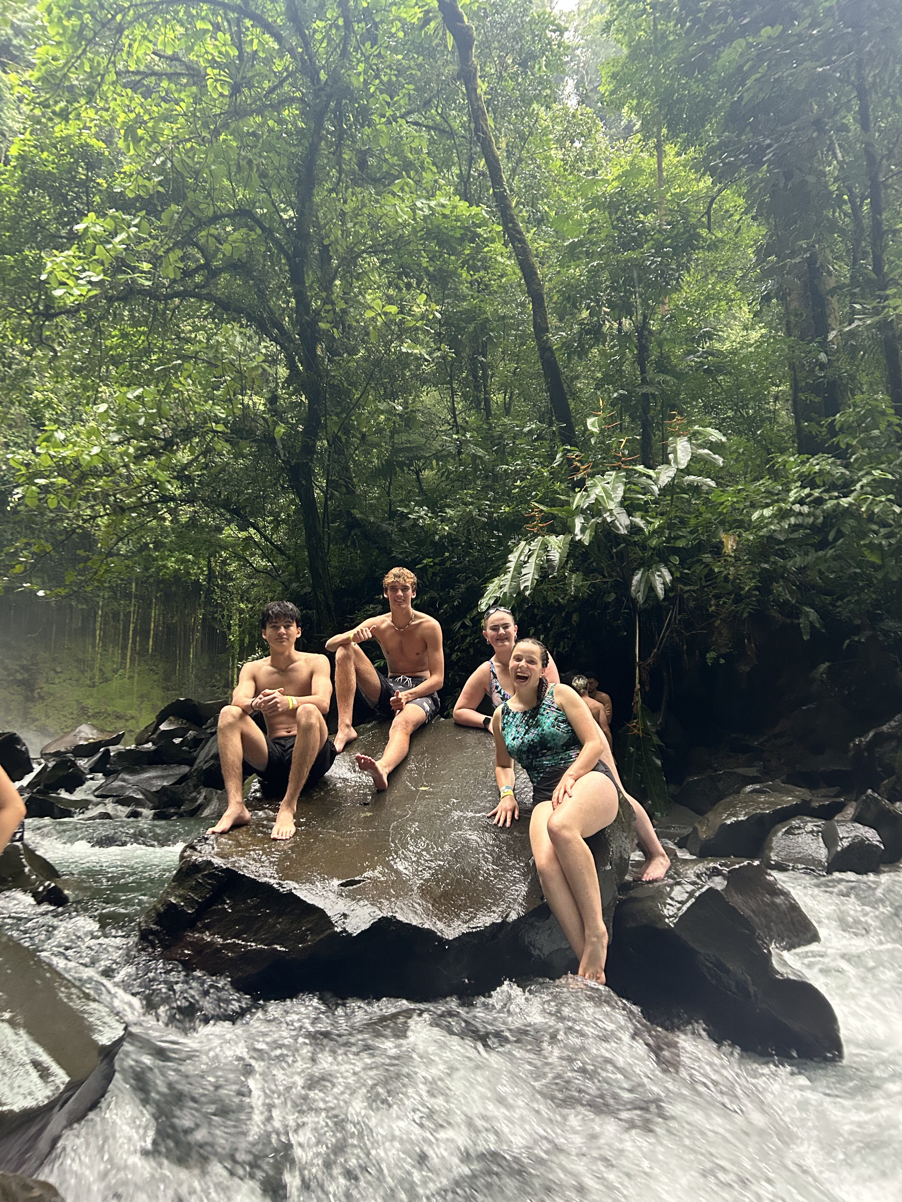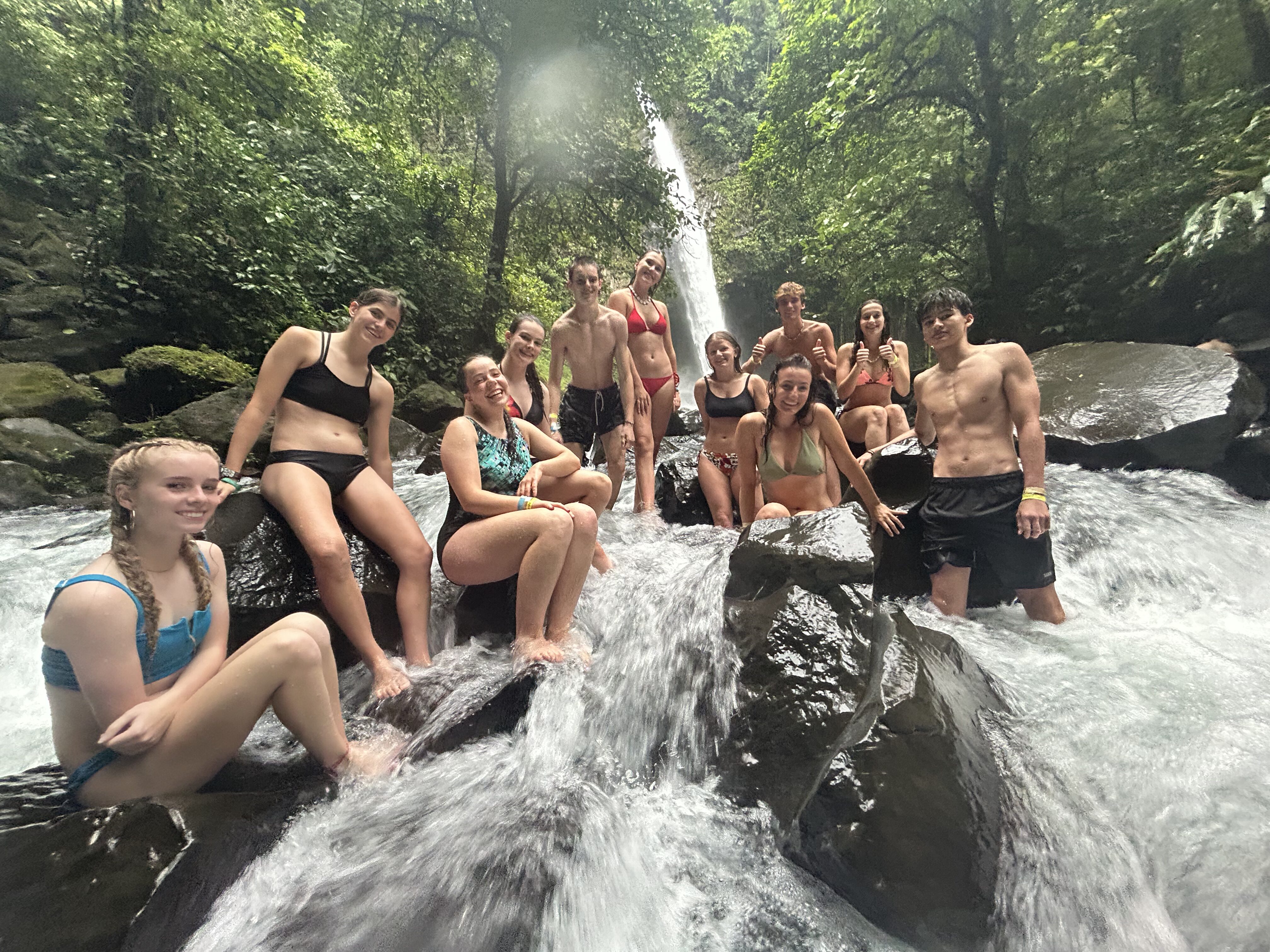 In the afternoon, we split into two groups. Some stayed back to enjoy more of the resort’s magic, while the others took on the challenge of La Fortuna Waterfall. After descending nearly 500 steps, students were treated to a scene straight out of Jurassic Park. (And yes, despite TLC’s advice, we definitely went chasing waterfalls.)
