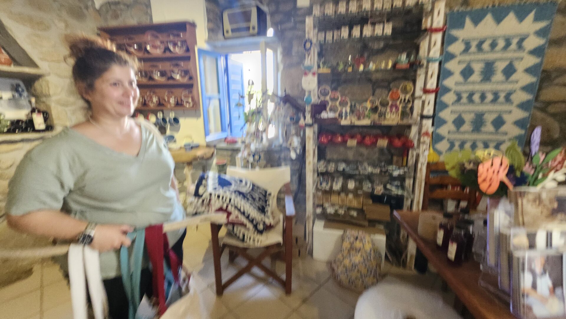 However, we had to move on. Once we took it all in, we boarded the bus and journeyed to the next destination of our adventure: the great marble village of Pyrgos. The long, winding road there was treacherous, scaling mountainsides that overlooked the vast, glistening Aegean Sea, an endless sheet of blue dotted with islands. Surrounding us were strange rocks that could have been found on Mars, monstrous, round, and smooth boulders. Our ancient civilization teacher explained that this wild terrain can only be found in two places in the world: in Mexico, where the speckled landscape is called Piedra Bola, and here, in Tinos, where locals call it Volakes, which inspired the name of the village. He told us that, according to myth, years ago the Olympians fought the Titans, and boulders rained down on this land. On the flip side, geologists theorized that the sea eroded these rocks over time. Obviously, I know which theory I like best, and that’s the one I chose to believe, as he let us have our pick.