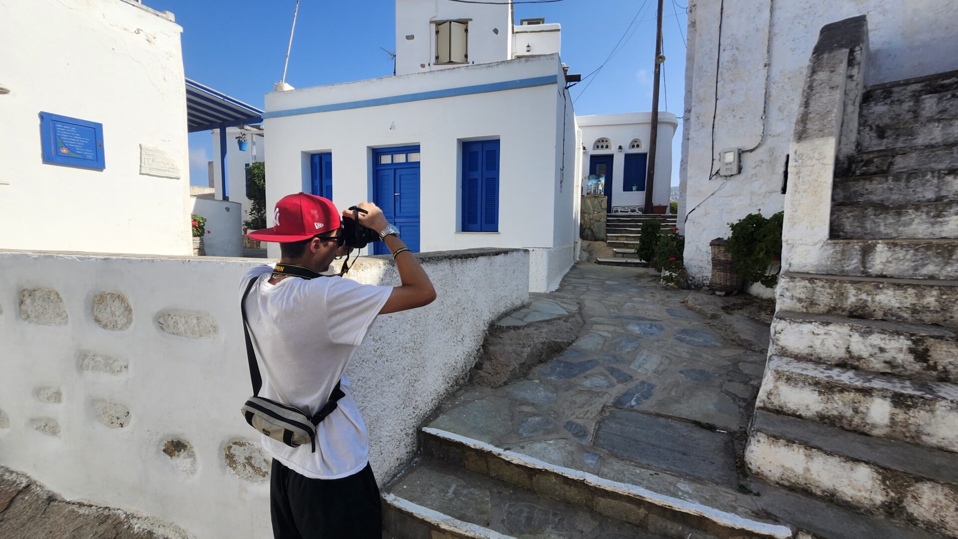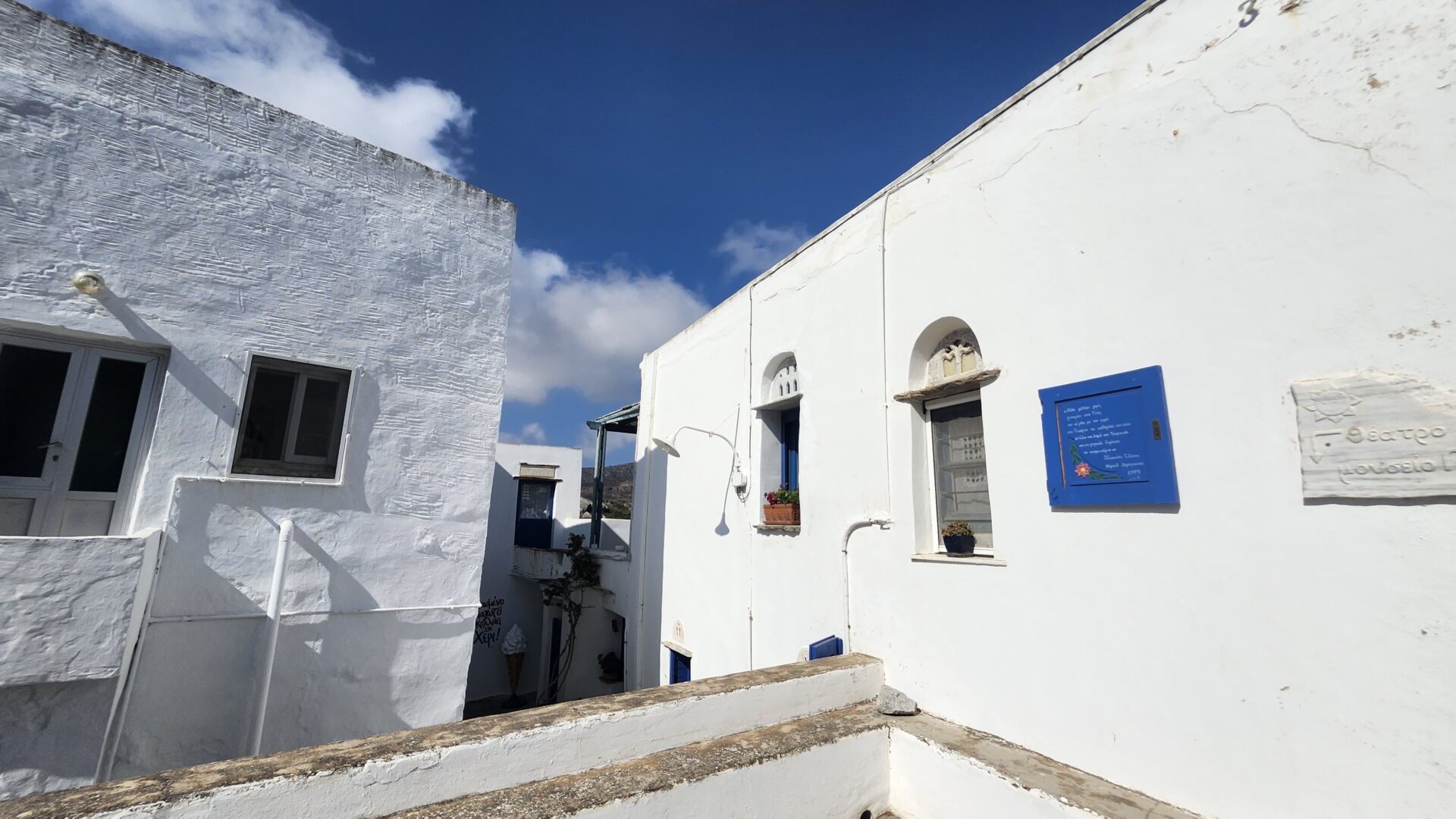 In Pyrgos, we explored the town under the beaming sun with a morning breeze, after savoring a golden french toast drizzled with honey and topped with berries. Sitting under an umbrella while the rest of the guys enjoy the scenic area, we tasted local flavours that lingered on our tongues. The town, all white with many marble structures, mesmerised our cameras with pure beauty.