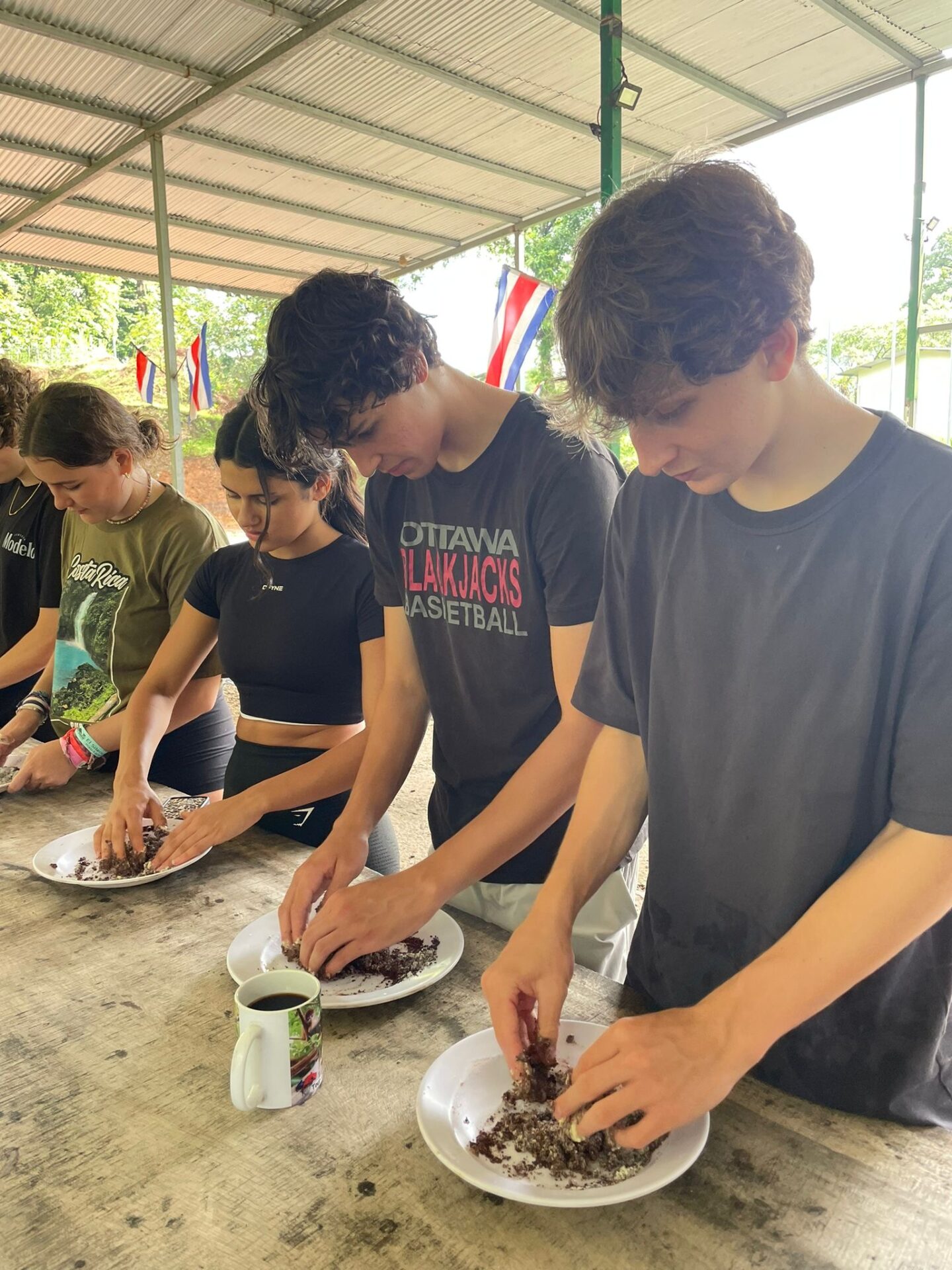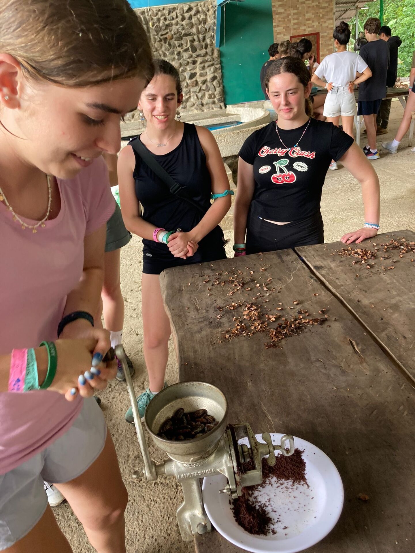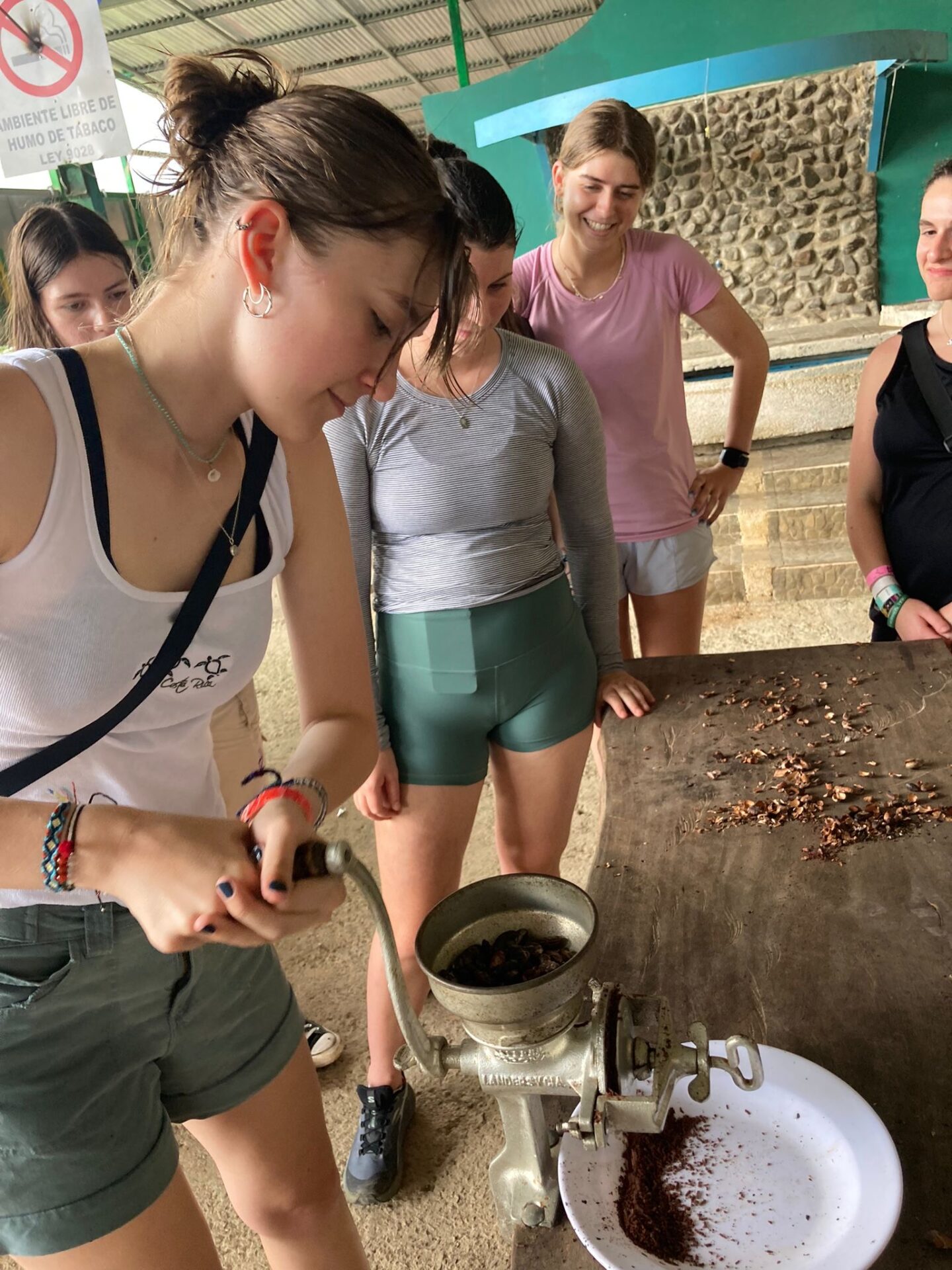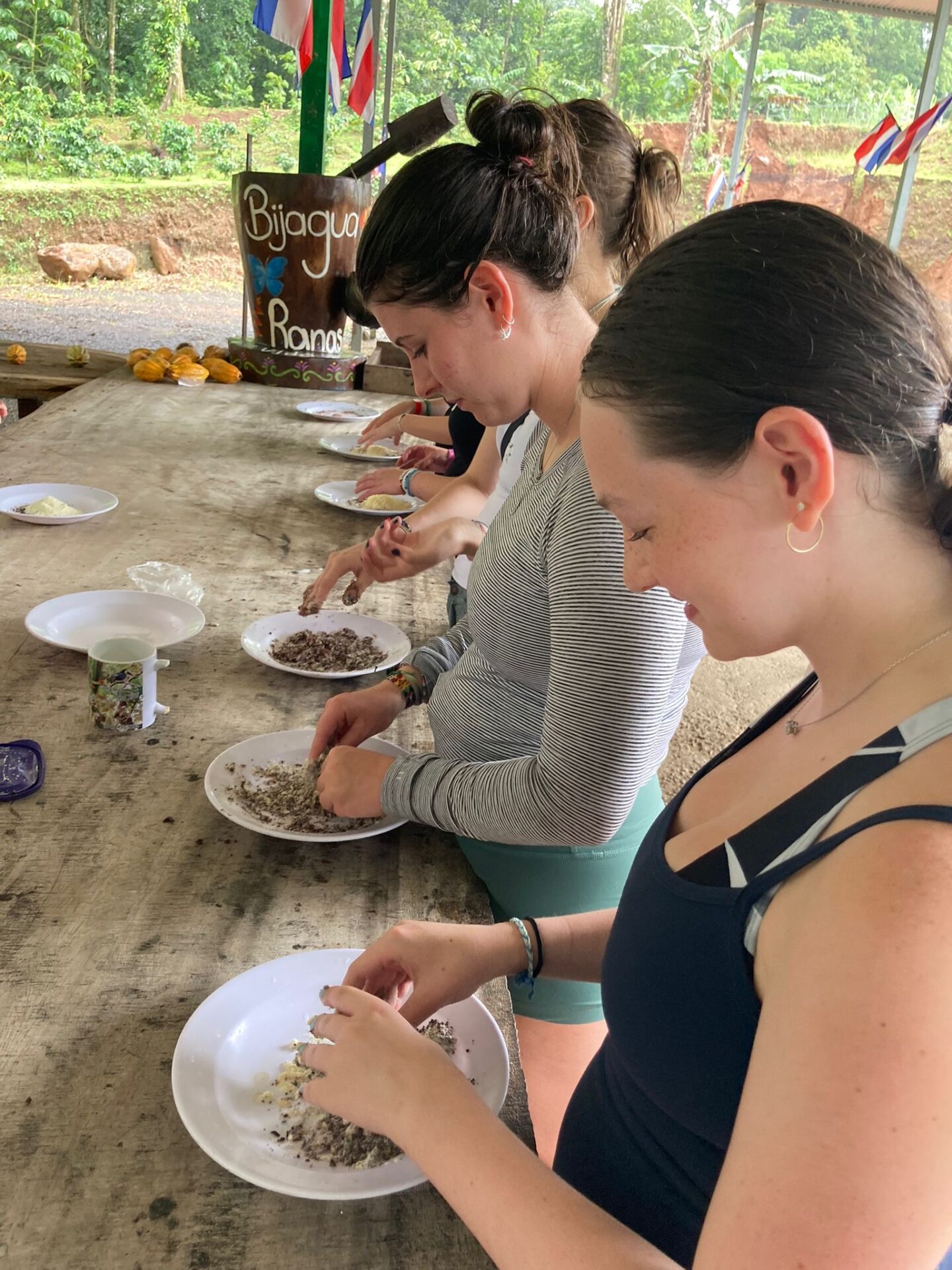 We are back in Coco and the past two days have been busy! Upon our arrival, students got to work on some course work and enjoyed some pool time. Then, our Group B students had the opportunity to visit Rio Celeste Waterfall and Bijagua Ranas Wildlife Sanctuary. At the Sanctuary we enjoyed some Costa Rican wildlife and traditions in a natural setting! The highlight was definitely seeing a baby sloth. Students also enjoyed making chocolate from raw cocoa, brewing fresh coffee and making fresh sugar cane! A great day living the pura vida!