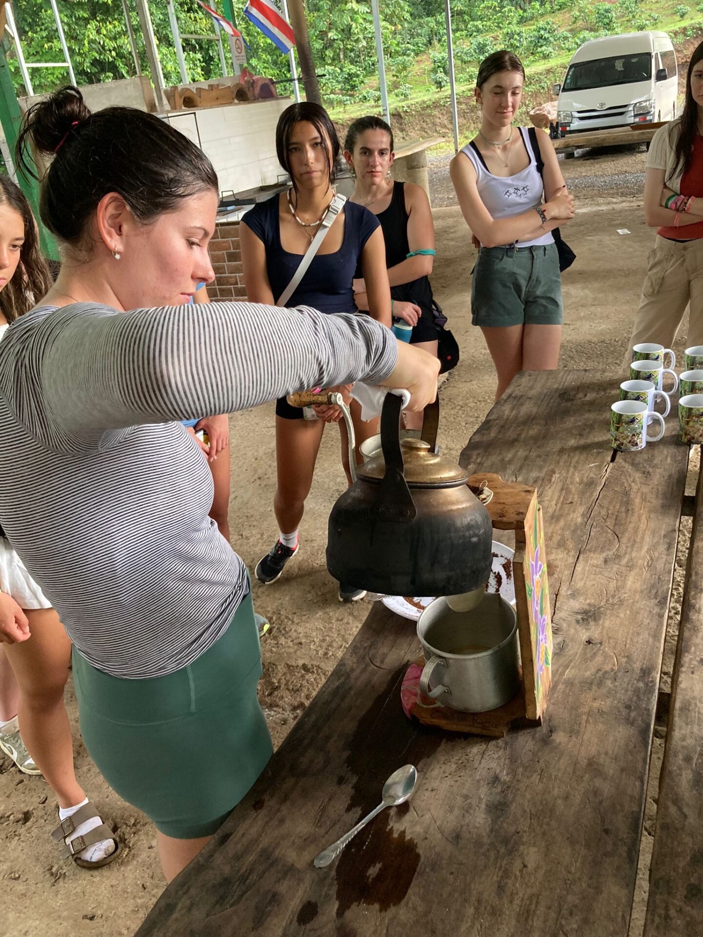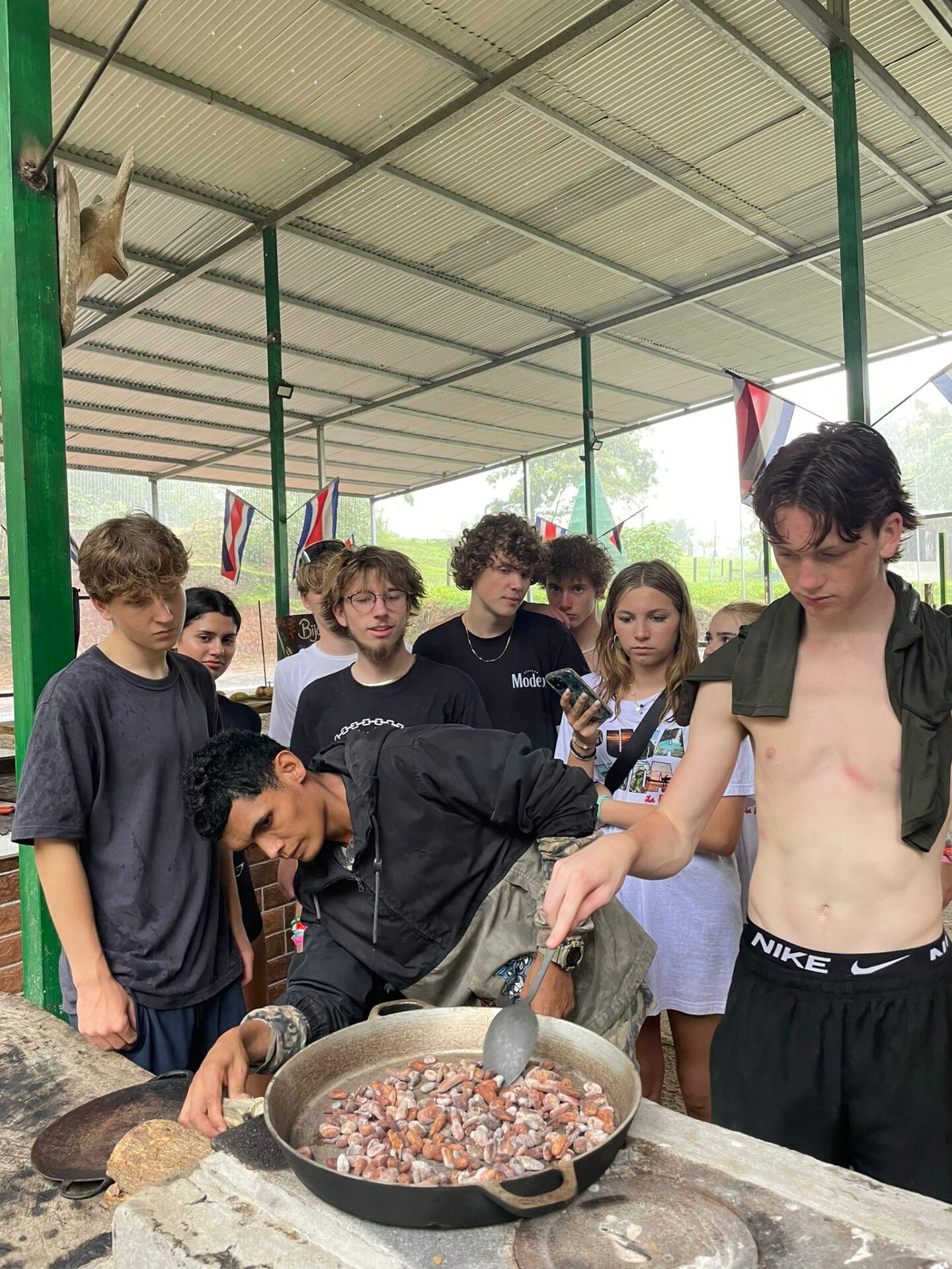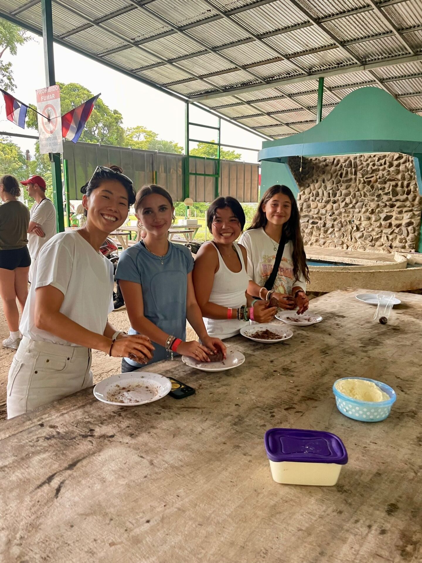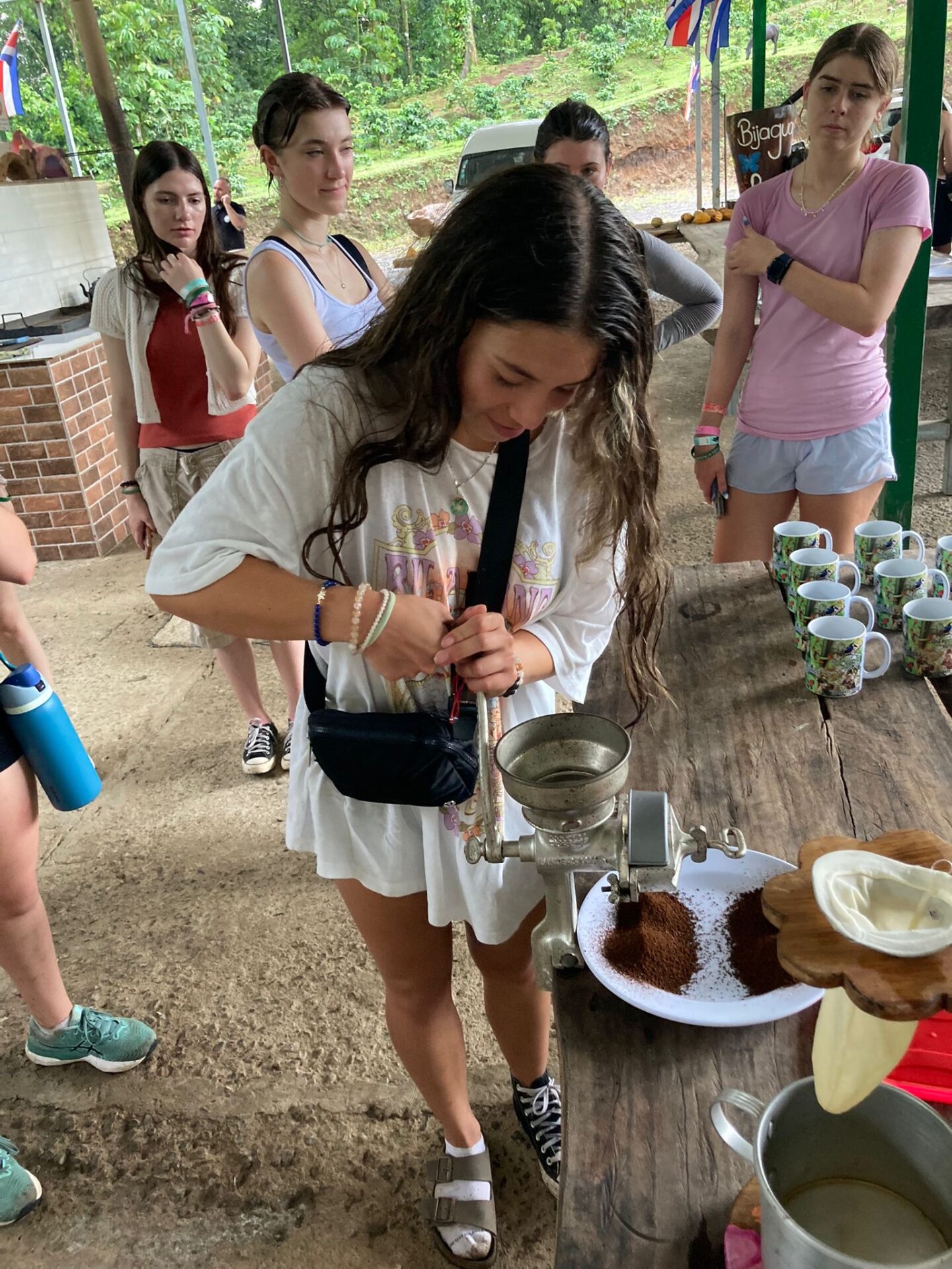 We are back in Coco and the past two days have been busy! Upon our arrival, students got to work on some course work and enjoyed some pool time. Then, our Group B students had the opportunity to visit Rio Celeste Waterfall and Bijagua Ranas Wildlife Sanctuary. At the Sanctuary we enjoyed some Costa Rican wildlife and traditions in a natural setting! The highlight was definitely seeing a baby sloth. Students also enjoyed making chocolate from raw cocoa, brewing fresh coffee and making fresh sugar cane! A great day living the pura vida!