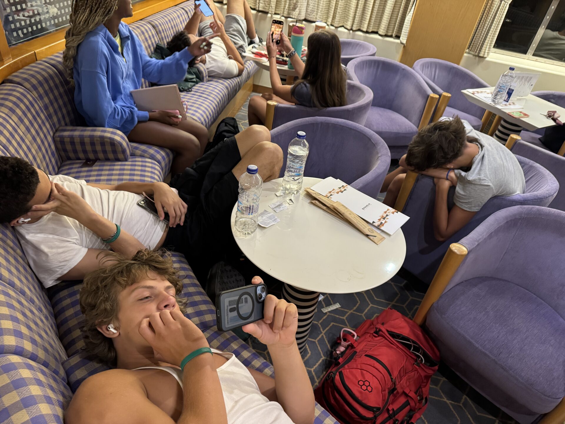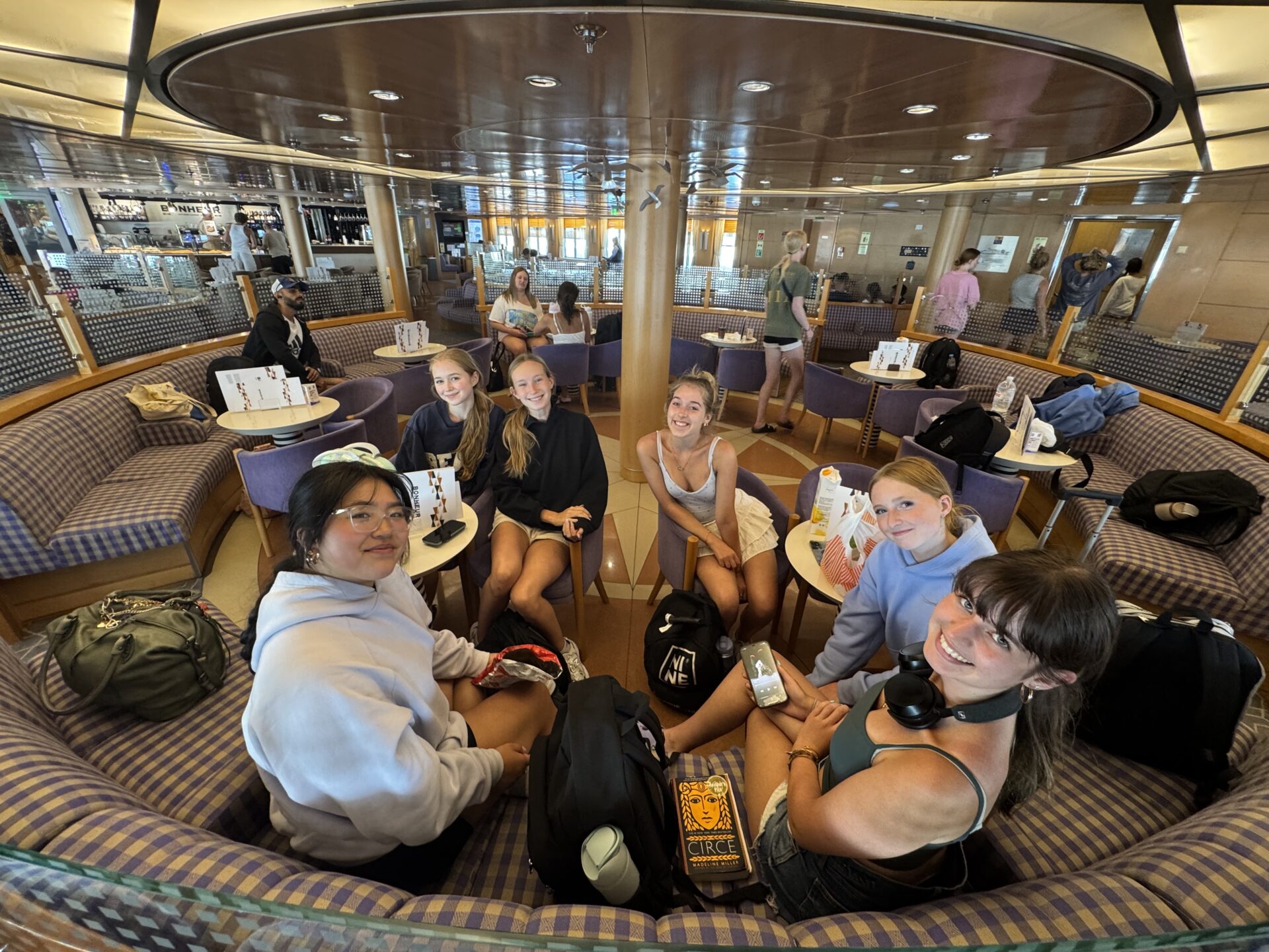 When the ferry finally arrived, it looked huge and steady, the kind of ship that made you think the ride would be smooth. That illusion didn’t last long. We boarded, relieved to be on our way, and settled into business class, which had cushioned seats and a small but impressive café. Not even thirty minutes into the five-hour trip, the waves started hitting us. At first, it was just a gentle rocking, but even that was enough to make my stomach turn. Soon, a lot of people were pale and quiet, focused on just getting through it. This was all a learning experience and truly taught us what it means to be travelers.