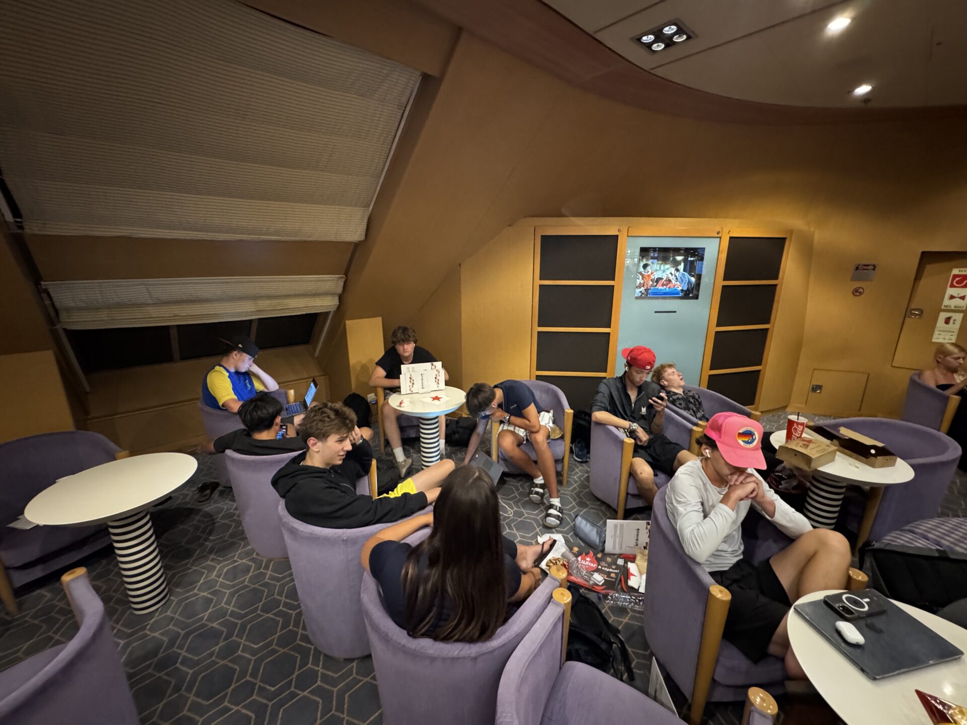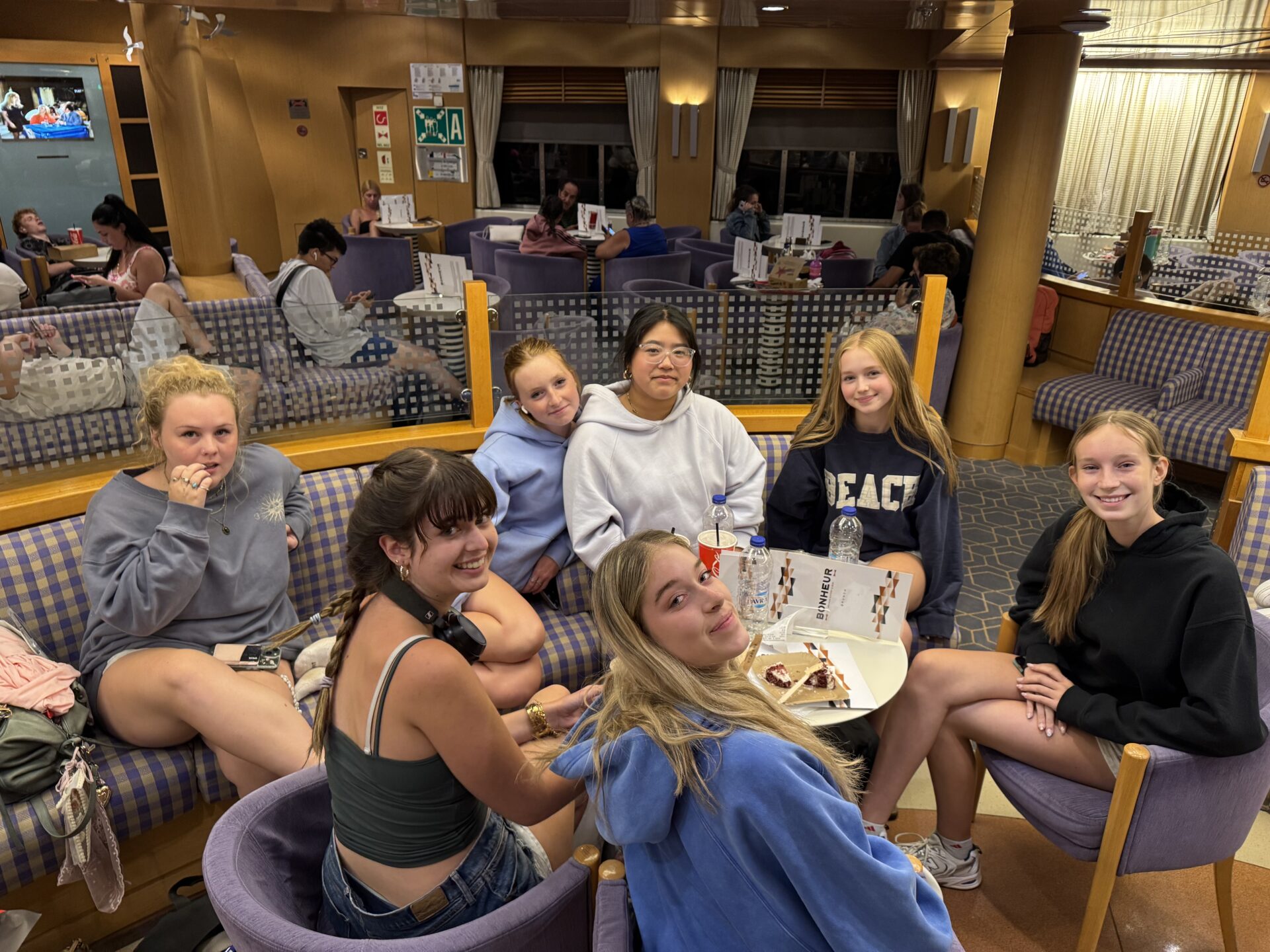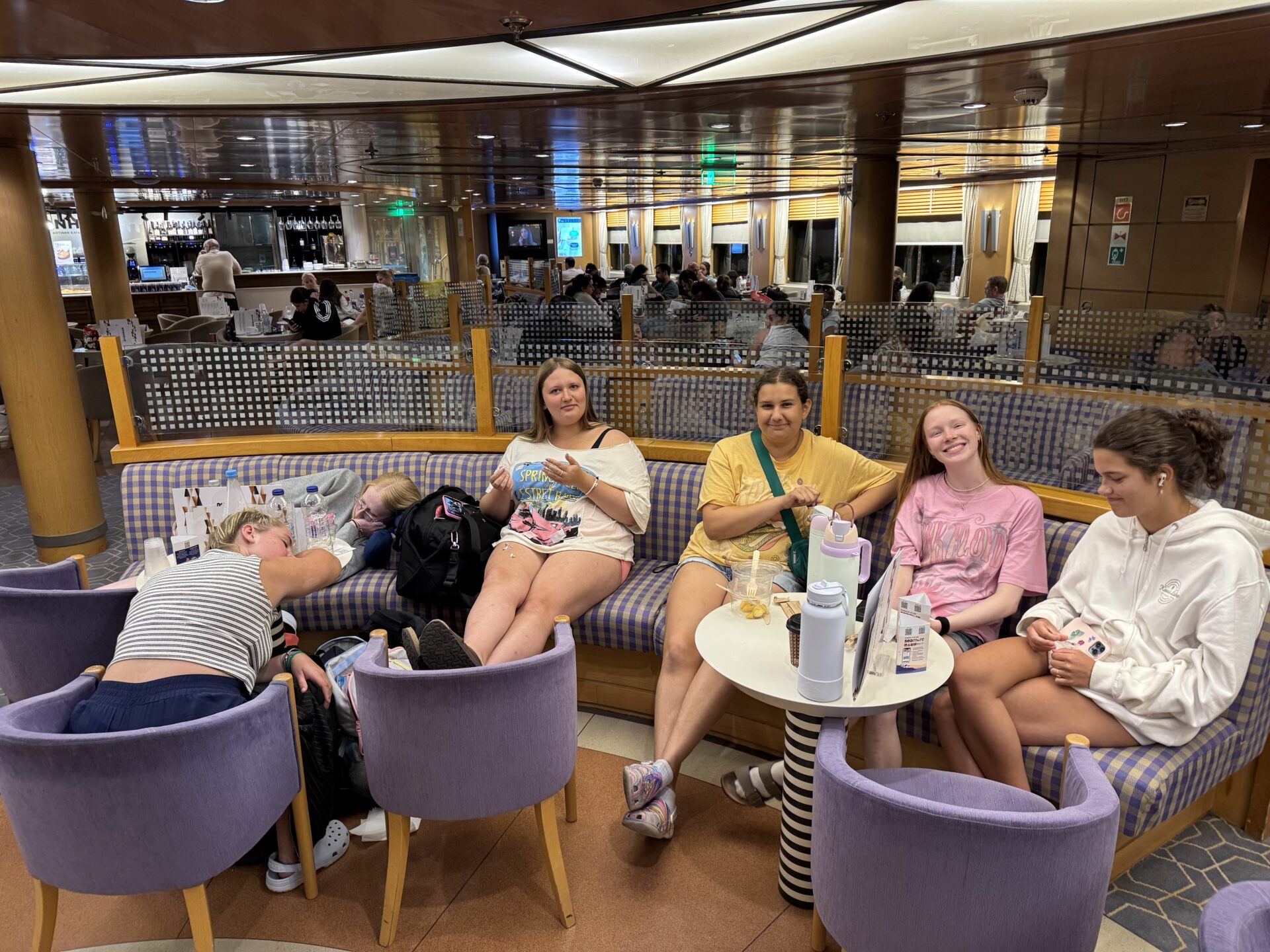 While on the ferry, most of us wandered out of business class to grab snacks from the ferry’s restaurant. Our haul included chips, pastries, burgers, and cold drinks, we were stocking up for the rest of the ride.