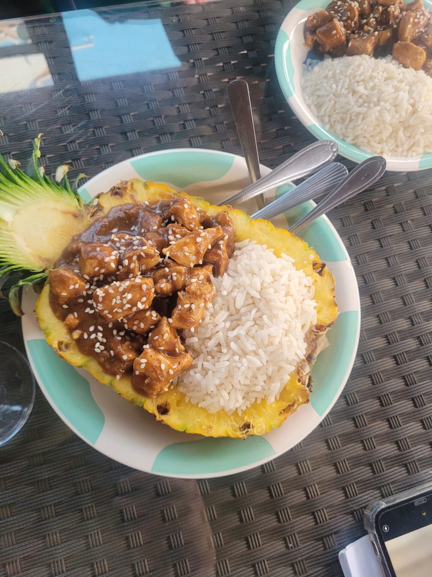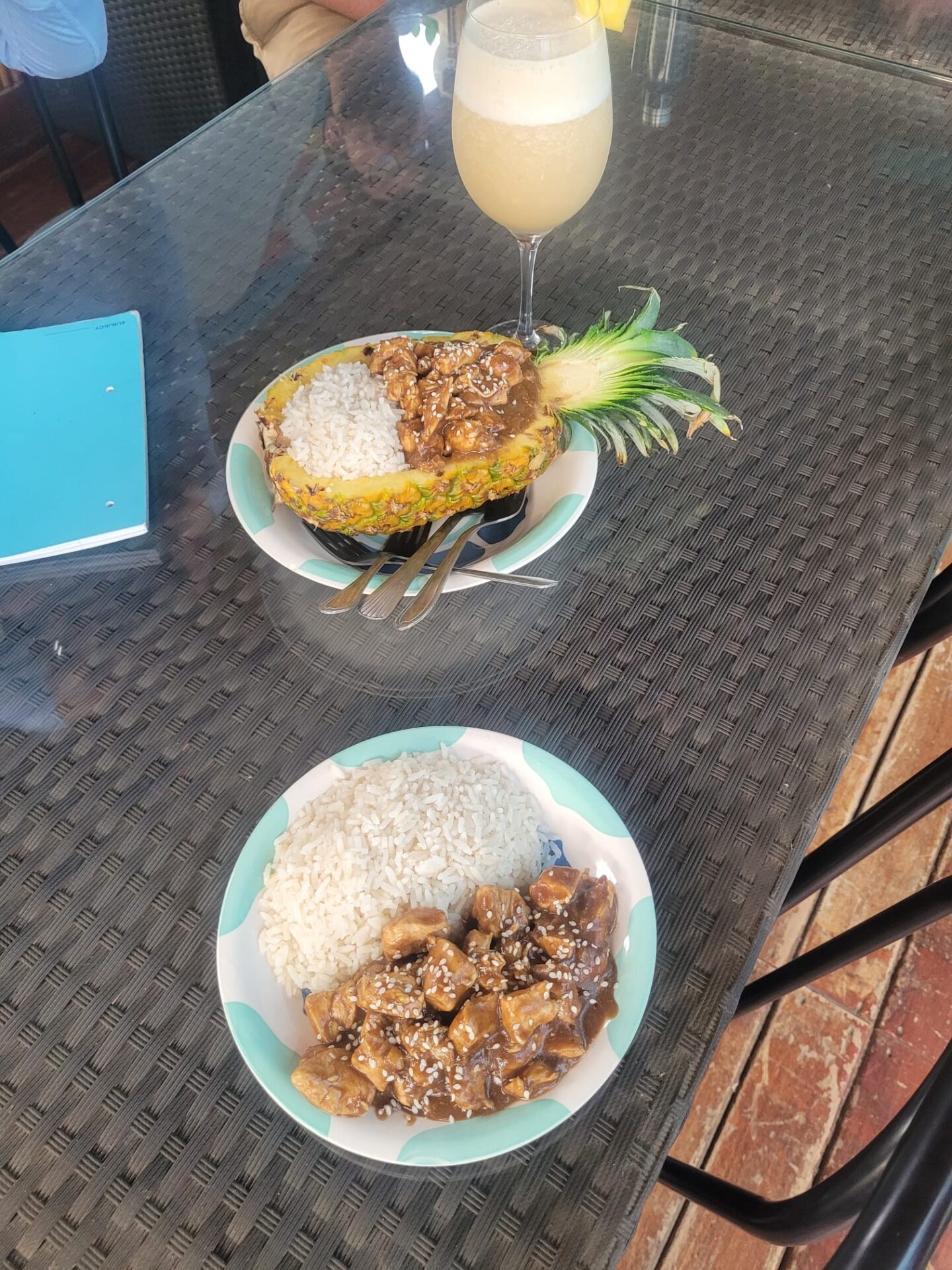 In the afternoon, two teams competed in “GSA’s Cooked!” Students had to use the secret ingredient in their dish: pineapple. The dishes were phenomenal and it was a tough call, but by a slight margin the win went to Ashley, Sienna, and Alicia for their tacos! Owen and Olivia wowed with their presentation of pineapple chicken and coconut rice, served in a pineapple! And to top it off they served it with a brown sugar piña colada on the side.
