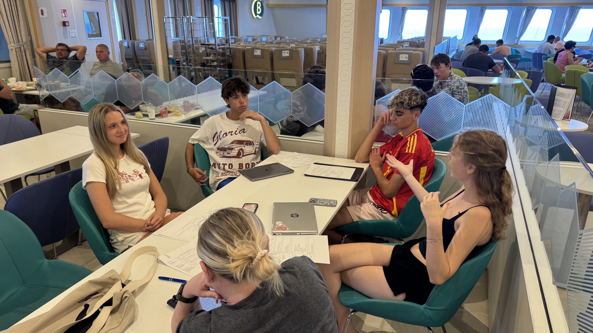 Though the ride was long, the students made the absolute most of it. We kicked off the day with a unique learning experience—class held right on the ship! It was a great reminder that learning can truly happen anywhere.