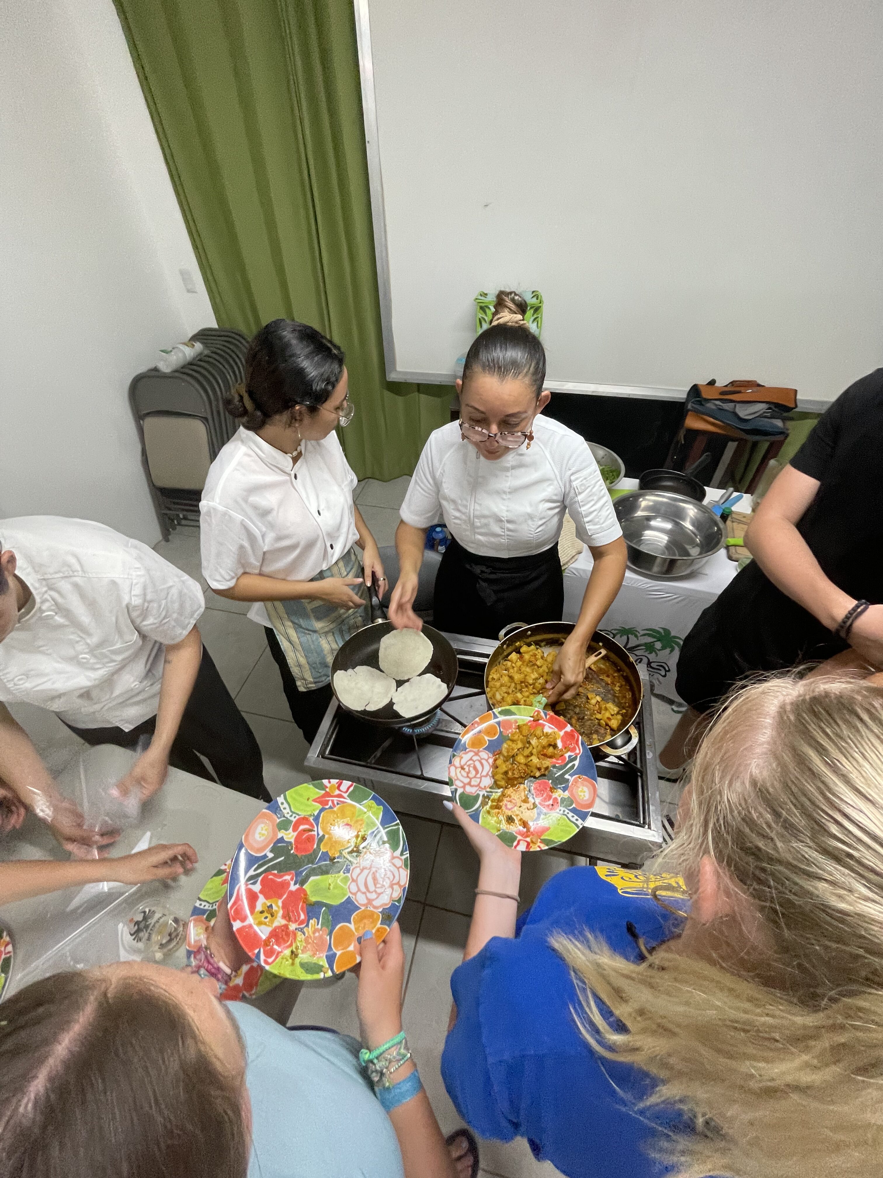 After lunch, it was time to experience a flavourful part of Costa Rican culture with a cooking class! Students worked closely with a local chef to prepare a traditional dish: Gallos de Picadillo de Carne con Papas, served with the refreshing and local favourite drink, Agua de Sapo!