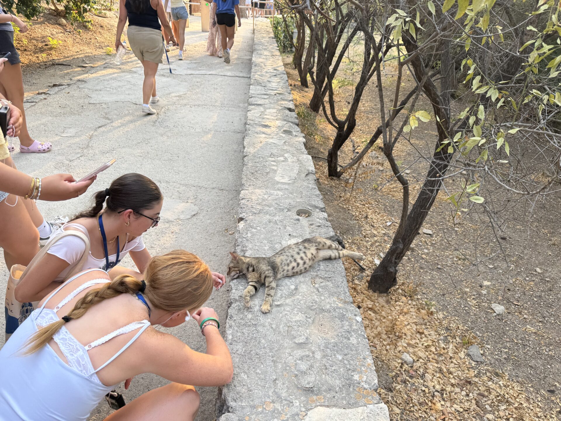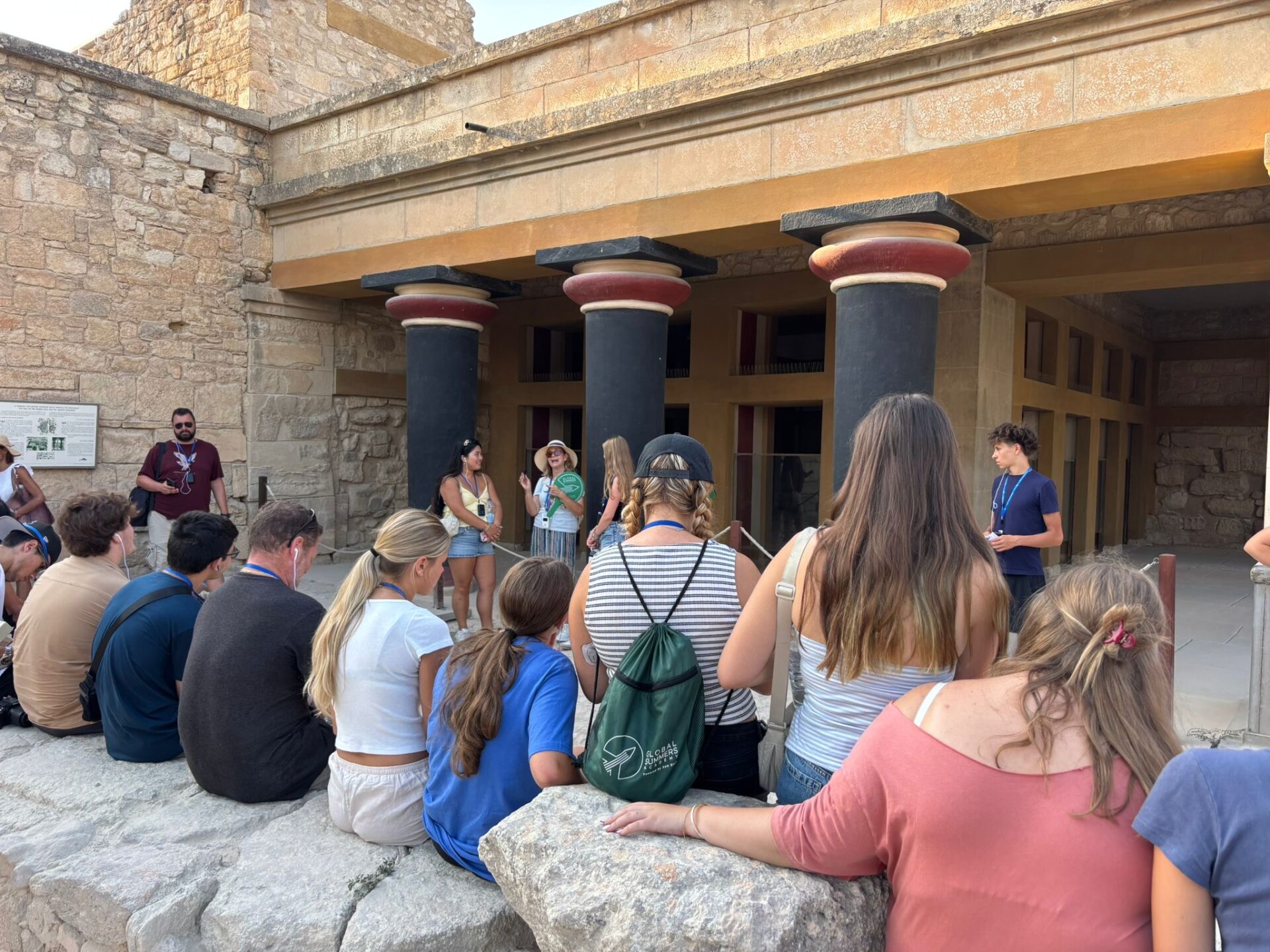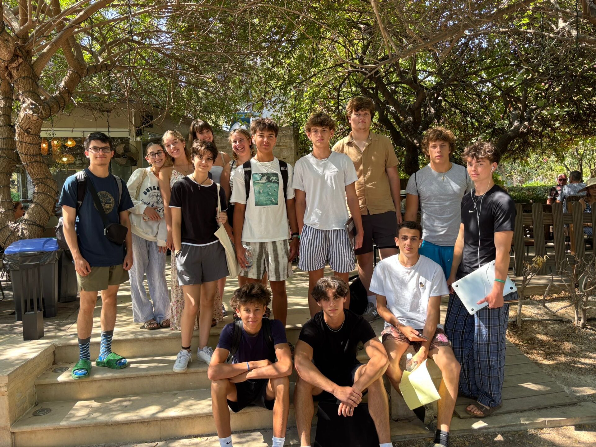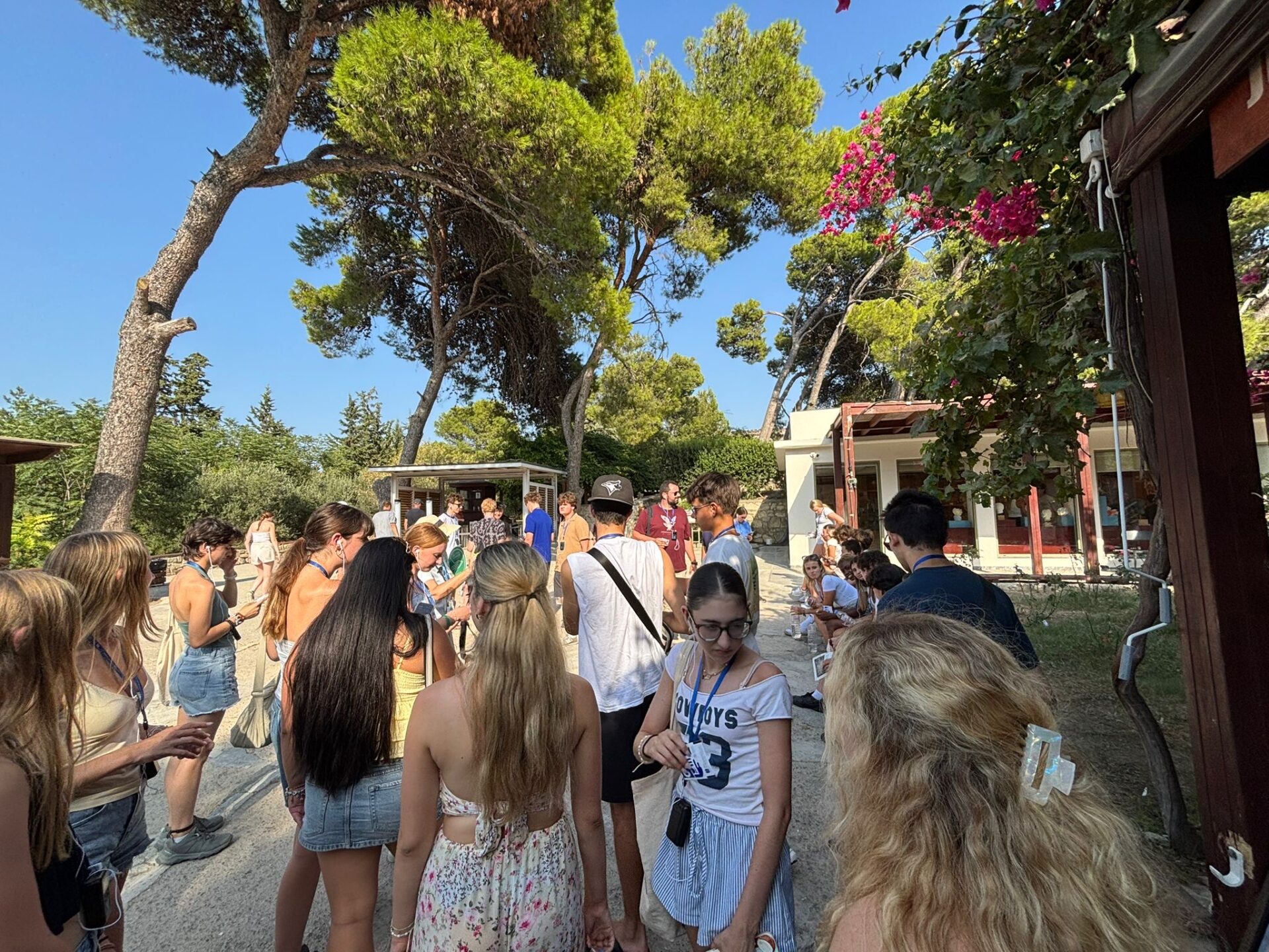 After a bit more shopping, we climbed back onto the bus and set off for Knossos, the oldest European capital and a historic landmark. There, we met with our tour guide, Maria, who walked us through the ruins of the palace, bringing its stories to life with each step. Walking into the ruins, knowing the walls had stood for thousands of years, was nothing short of breathtaking. It’s incredible to think about how much we’ve uncovered about the past, yet how many mysteries still remain. Within the palace walls, countless stories have been created and taken place, but none more famous than the legend of the Minotaur and the labyrinth where he was said to be trapped, a tale our guide shared in detail. We learned about the Minoan people, their unique culture, and the way they lived, even pausing to admire ancient tapestries that gave us a glimpse of how they looked in their own time. While everyone learned a lot of information, the history students listened with particular focus, knowing they’d be writing a journal entry on Knossos as part of their work for the day. When it was time to leave, we stepped onto the oldest road in Europe. Walking along it left a quiet, lingering awe, knowing that for thousands of years, both everyday people and great historical figures had set foot on those same stones.