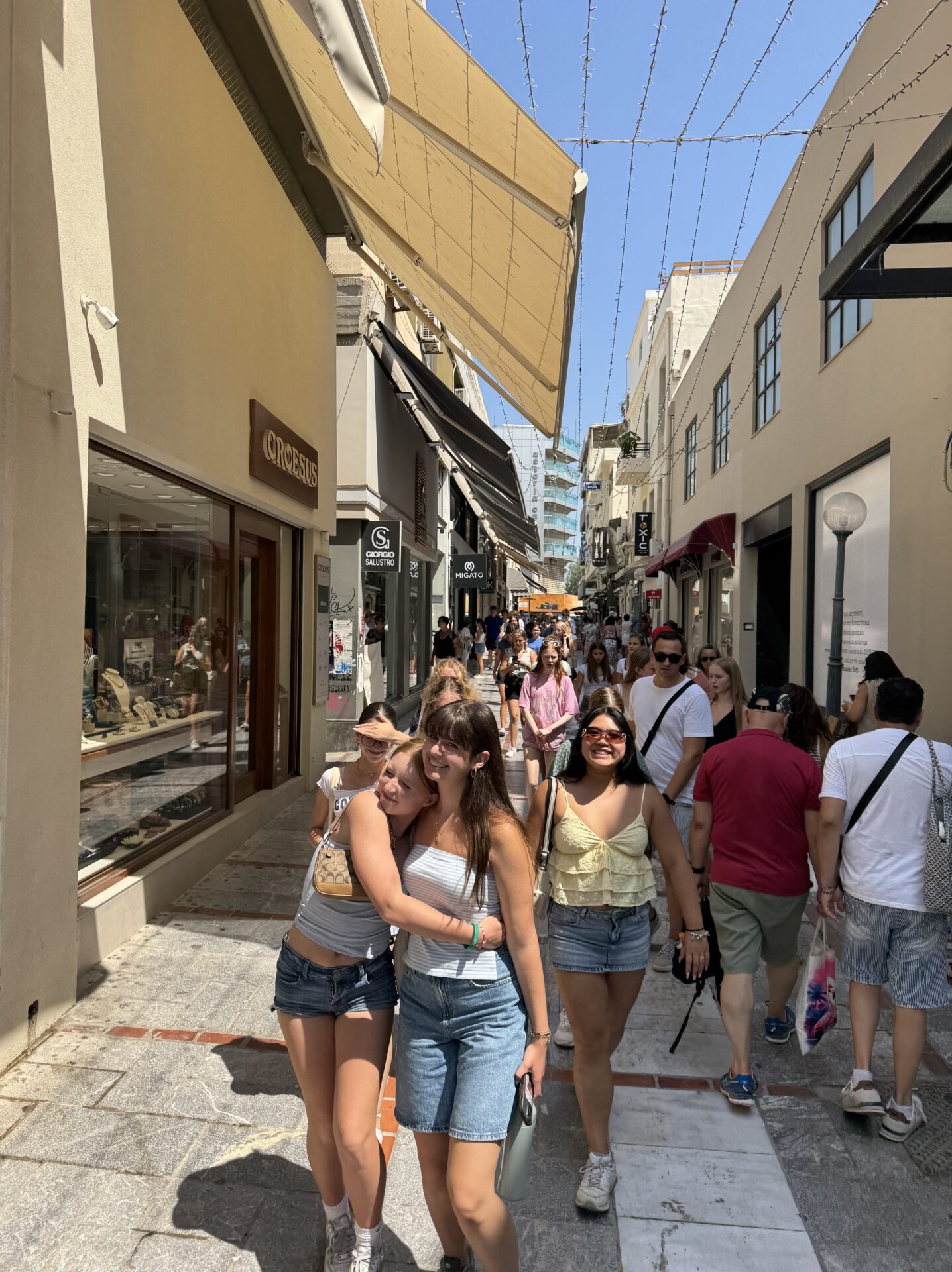 After a morning full of school work, everyone piled onto the bus and set off for Heraklion, the bustling capital of Crete. The ride was full of chatter and music that quietly travelled from someone’s phone, with everyone buzzing about what they might see or buy. When we arrived, the streets were alive, shops bursting with bright colours and captivating appearances, and the air carried the smell of fresh bread, coffee, and something sweet I couldn’t quite place. We wandered in small groups, trying on clothes, picking up little trinkets, and stopping to look at anything that caught our eye. At one point, my group found a gelato shop and ordered some fruit sorbet that honestly might have been the best thing I’ve ever tasted. It was so fresh, so real, that it made me smile without thinking, like summer had been frozen just so I could eat it.