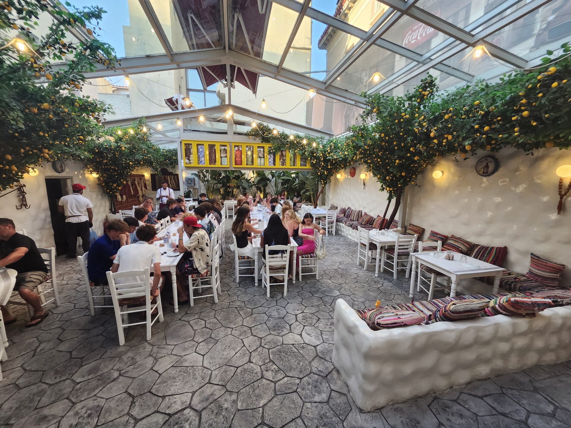 Our first stop was a restaurant called Stone. The name was simple, but the food was unforgettable. I ordered a chicken gyro, and the second I bit into it, I forgot all about the ferry. The pita was soft and warm, the chicken perfectly seasoned, and the tzatziki tied everything together with a garlicky kick. It was comfort food in the best possible way. I had eaten here on our very first day in Athens, so it felt like the city was welcoming me back with open arms.
