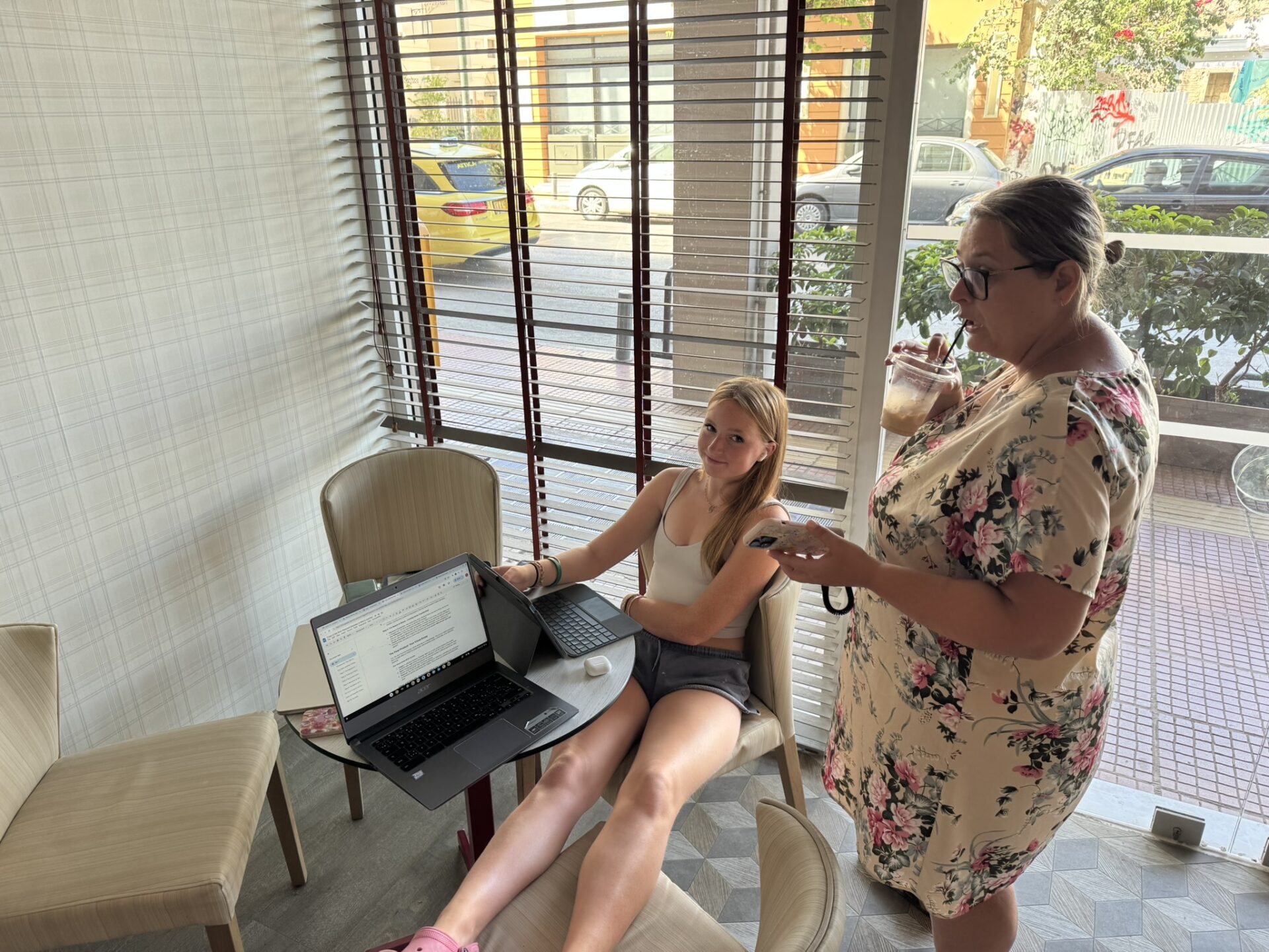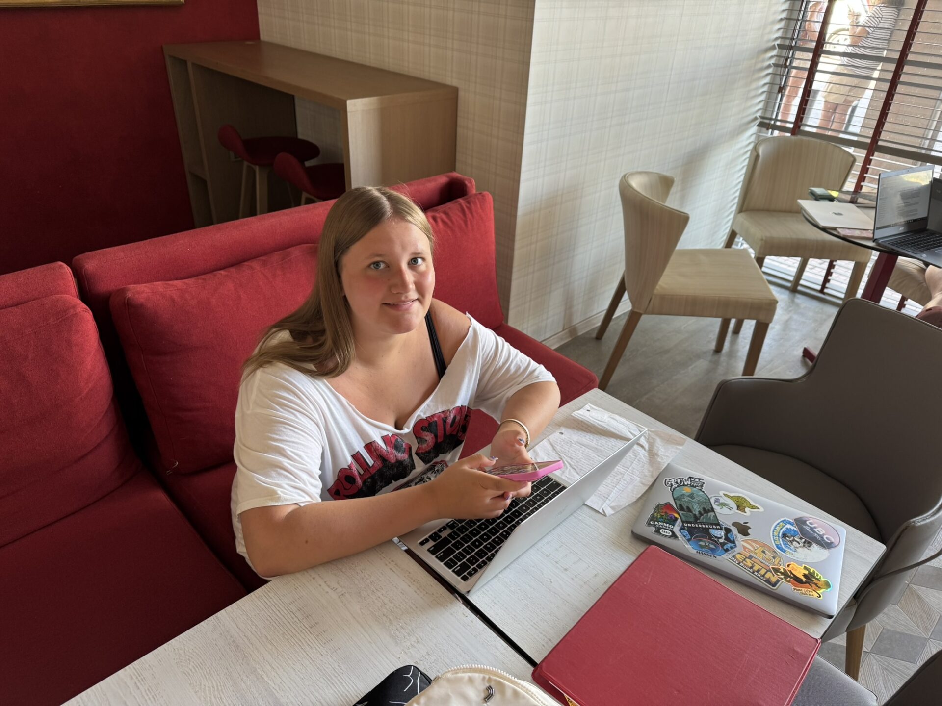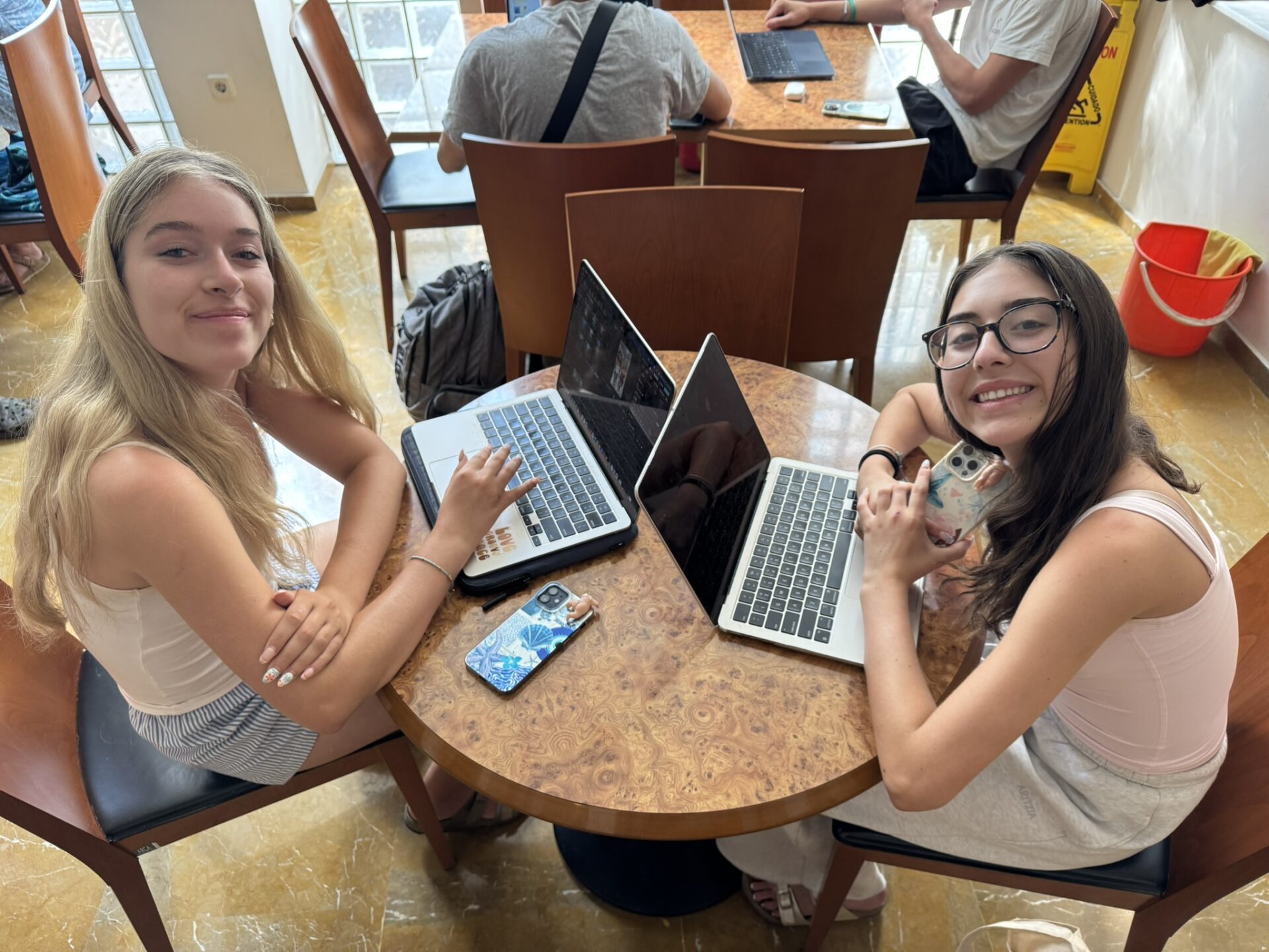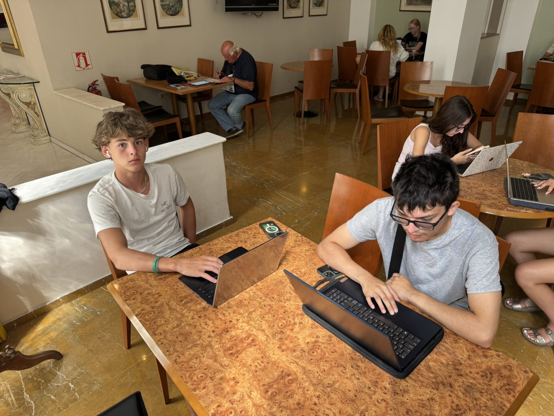 I showered, got ready, and took the elevator—the kind with doors you had to open by hand, not the automatic ones we’re used to—to the rooftop patio for breakfast. I greeted everyone and filled my plate with crispy bacon, a croissant slathered in Nutella, Greek yogurt with honey, and, unusually for me, a cup of hot coffee. I needed every bit of energy for what was ahead. After breakfast, we met in the lobby for our last class of the trip. Mrs. Amelio walked us through key concepts for the exam and checked in on everyone’s progress. As soon as class ended, I buckled down and worked non-stop for two hours before finally allowing myself a break for lunch.