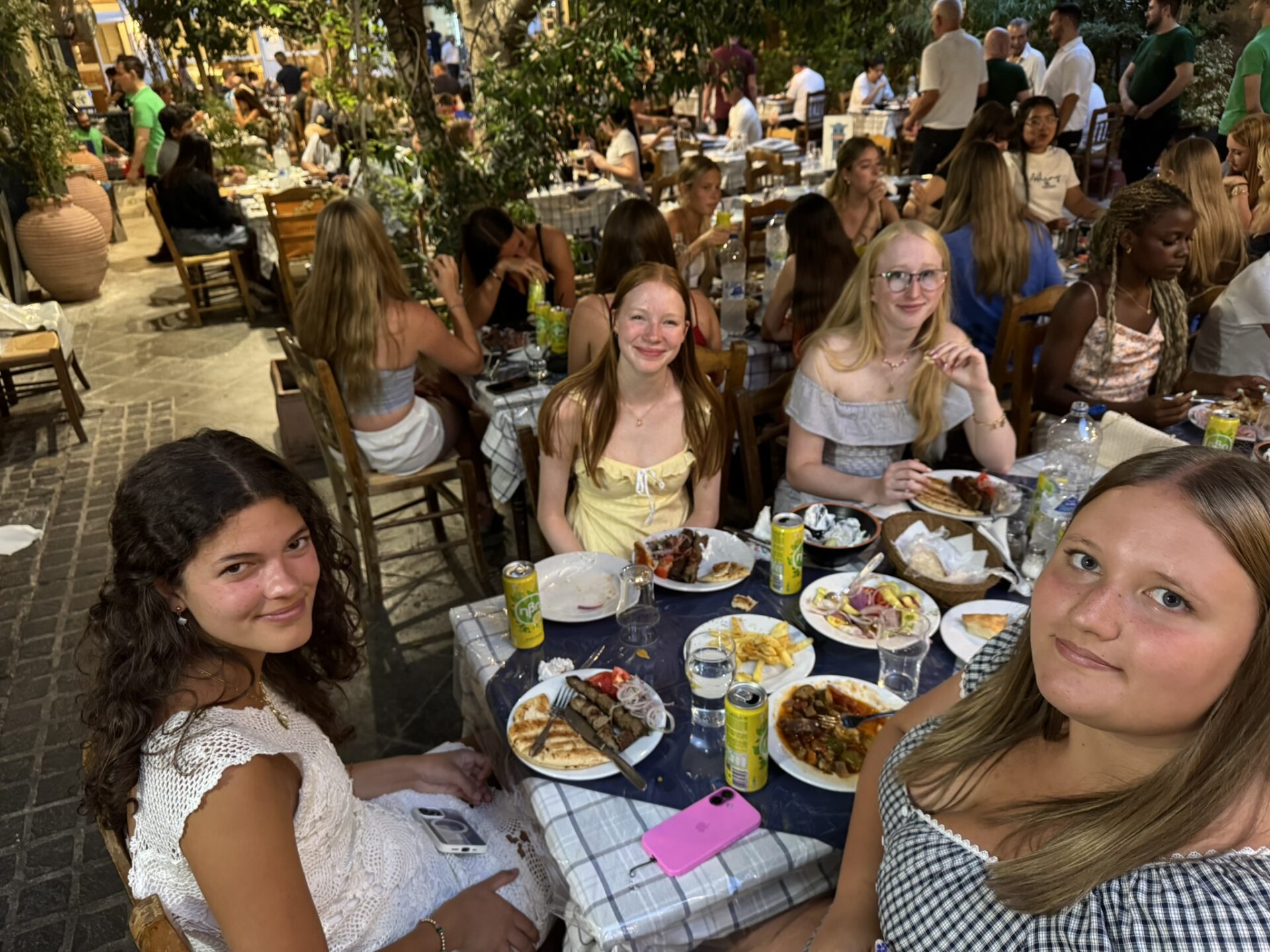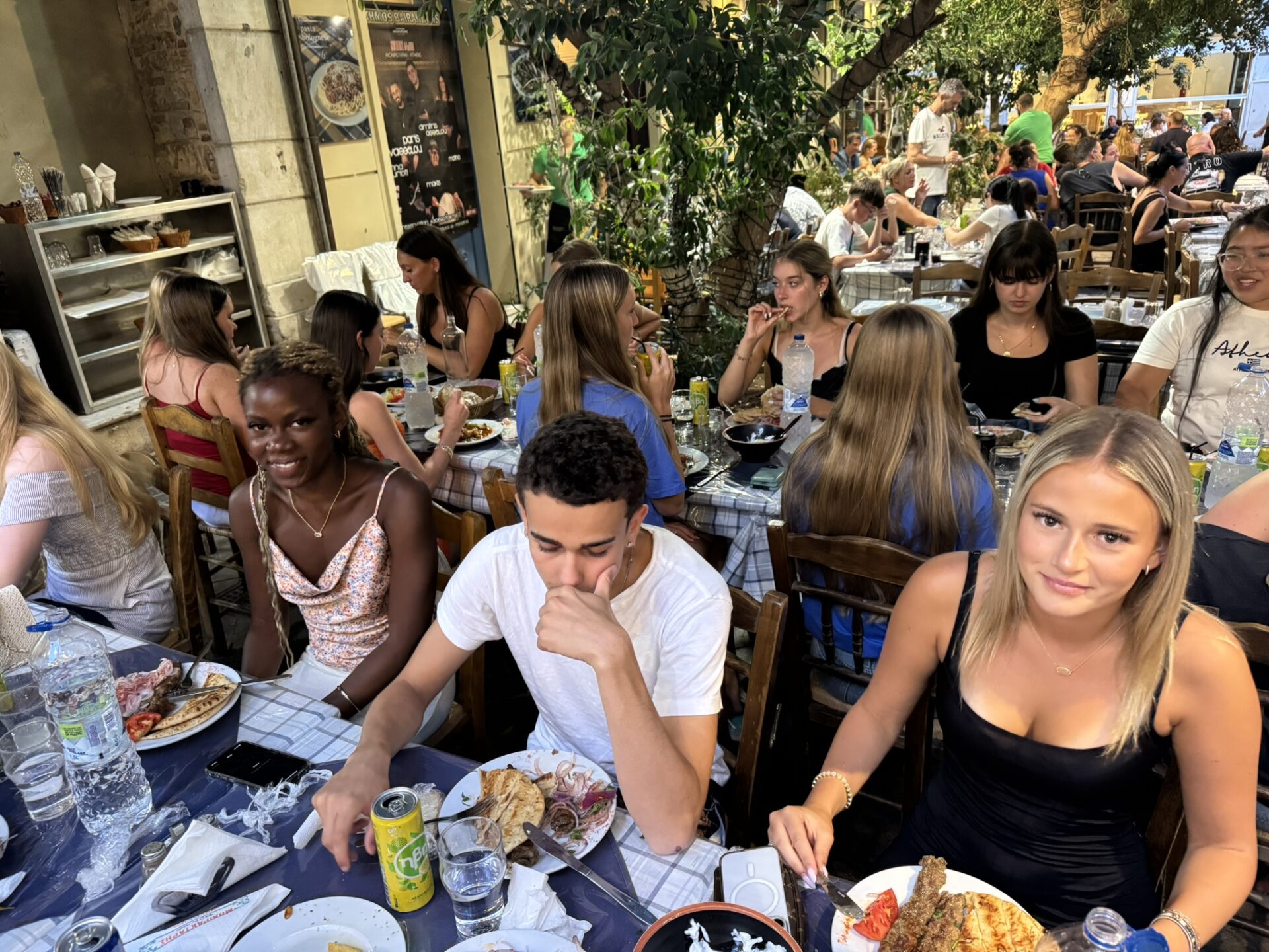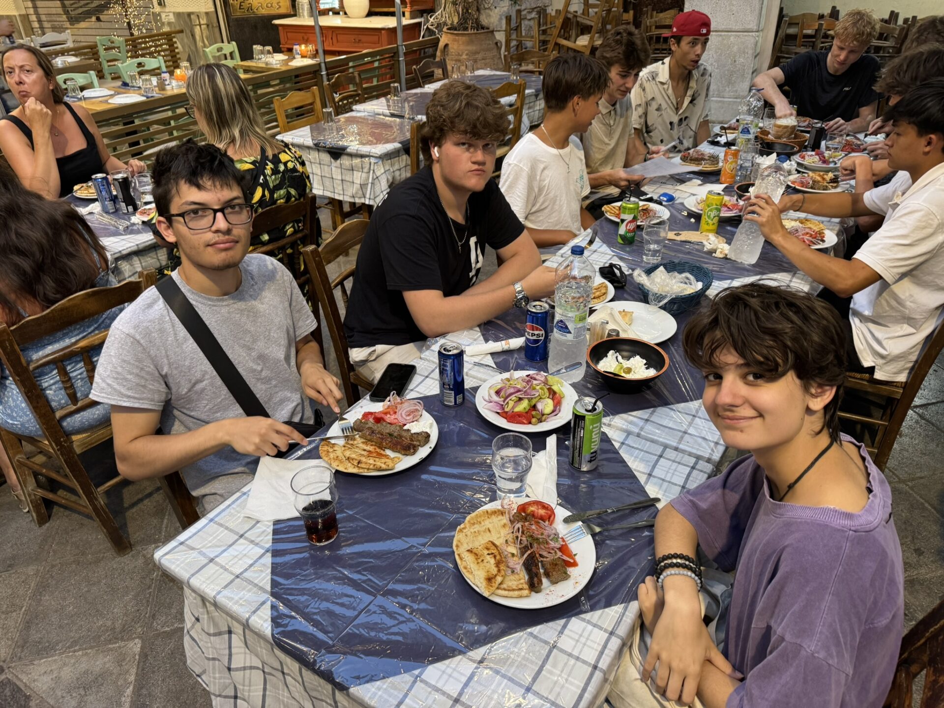 A quick walk with friends led us to one last gyro stop. Along the way, I interviewed one of the history students, Caleigh. She told me her day was pretty relaxed and that she didn’t have much left to do besides studying for her exam in her room. I also talked to Simon, a photography student, who said he was buried in work and feeling stressed. I was surprised—I had assumed photography would be easy. Eventually, we picked up our gyros, and maybe it was just because I was starving, but it was easily one of the best of the trip. Still, I couldn’t enjoy it for long. More work was waiting back at the hotel. After wasting half an hour scrolling on my phone, I forced myself to focus again. I finished the script for my culminating video—but only after recording it more than twenty-five times before finally getting it right. By then, it was already time for dinner.