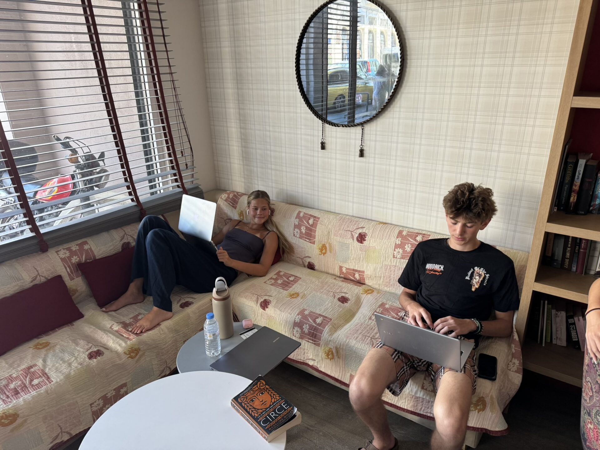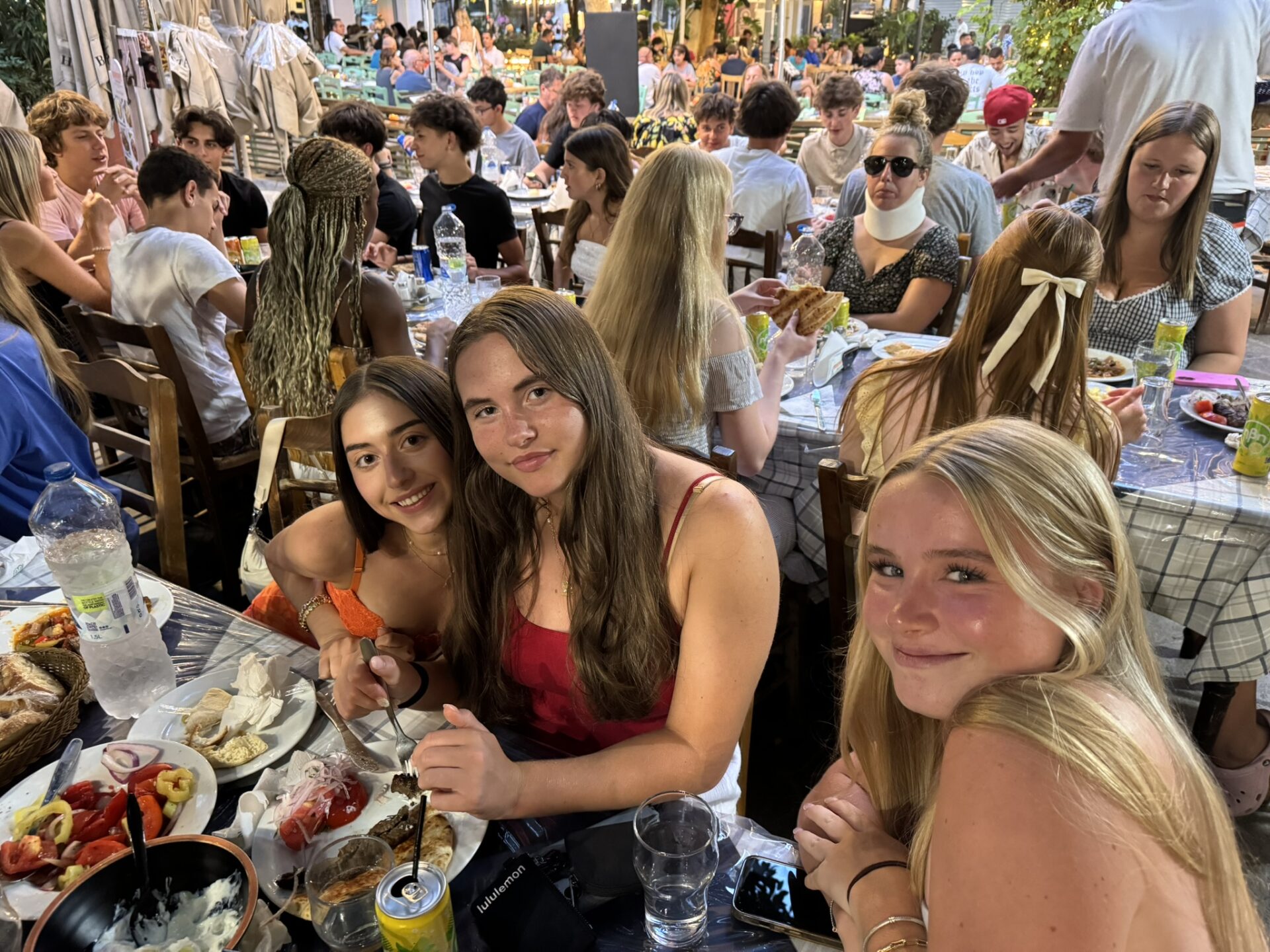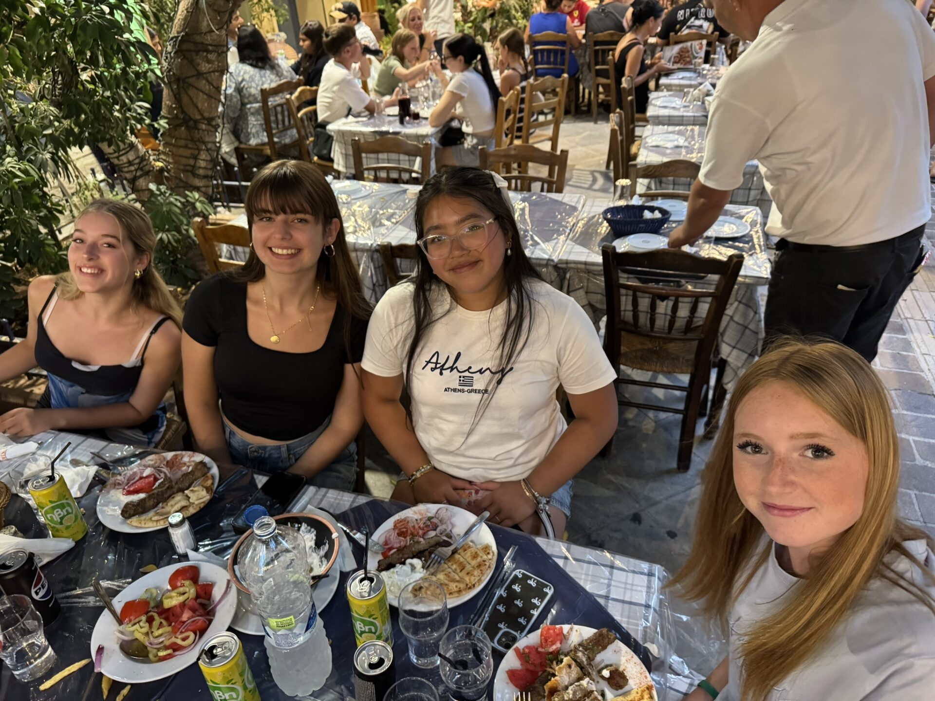 A quick walk with friends led us to one last gyro stop. Along the way, I interviewed one of the history students, Caleigh. She told me her day was pretty relaxed and that she didn’t have much left to do besides studying for her exam in her room. I also talked to Simon, a photography student, who said he was buried in work and feeling stressed. I was surprised—I had assumed photography would be easy. Eventually, we picked up our gyros, and maybe it was just because I was starving, but it was easily one of the best of the trip. Still, I couldn’t enjoy it for long. More work was waiting back at the hotel. After wasting half an hour scrolling on my phone, I forced myself to focus again. I finished the script for my culminating video—but only after recording it more than twenty-five times before finally getting it right. By then, it was already time for dinner.