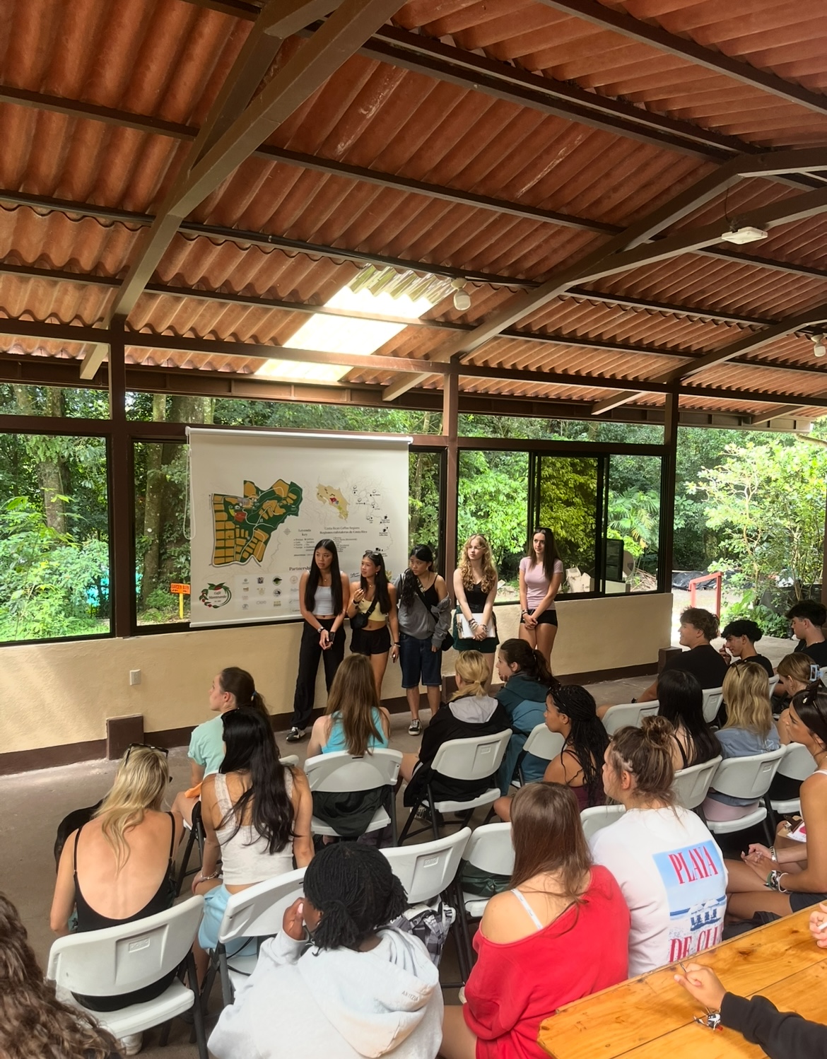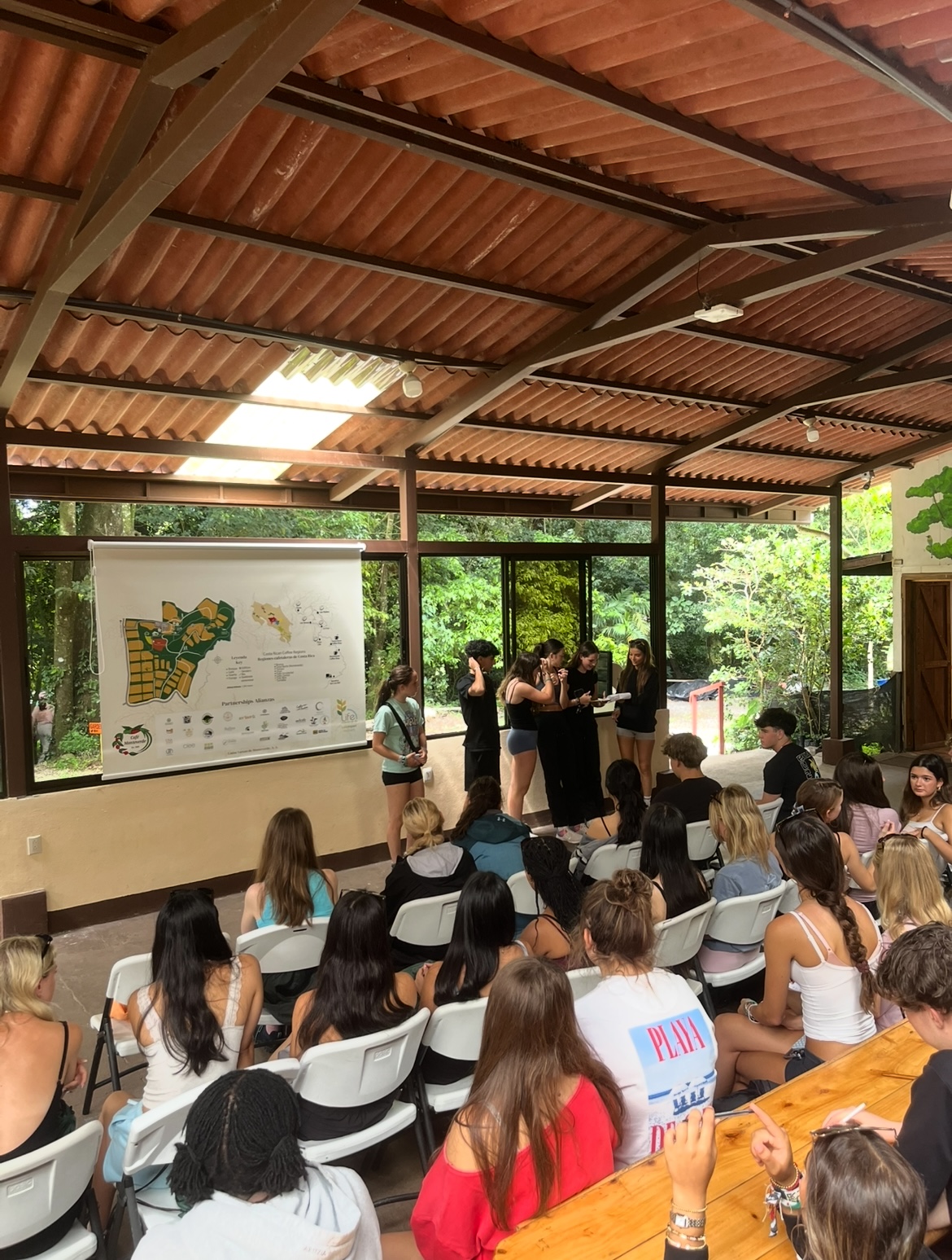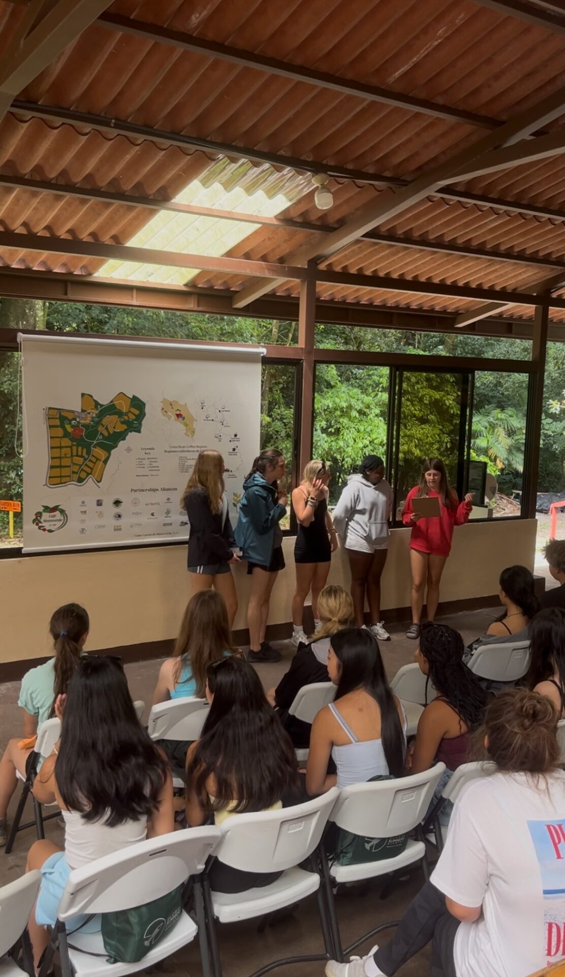 Today was a perfect blend of culture and learning! We visited a local coffee plantation where we explored the step-by-step process of how coffee is grown, harvested, and roasted. We even got to learn about the different types of coffee and what makes Costa Rican beans so special! After a delicious lunch, we joined in the celebration of a local holiday, complete with traditional music and dance performances, it was an unforgettable way to connect with the local culture. We wrapped up the afternoon with some class time, another full and unforgettable day in Monteverde!