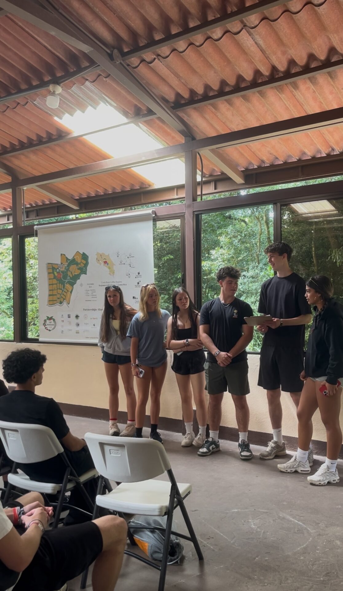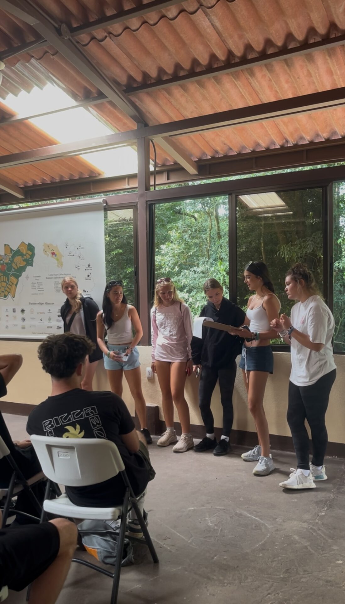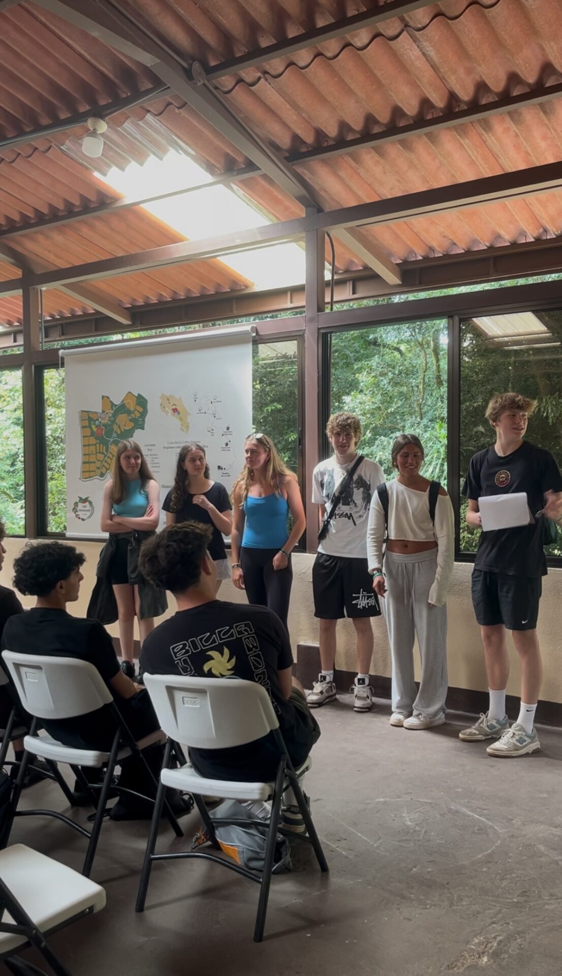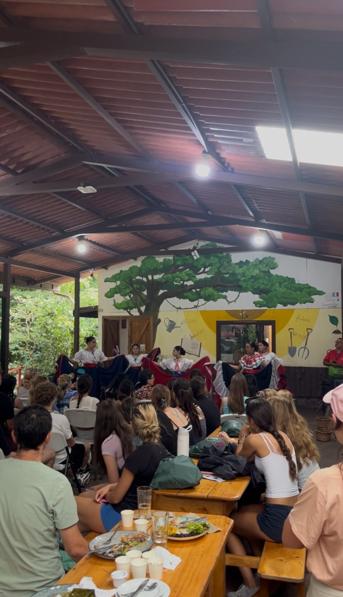 Today was a perfect blend of culture and learning! We visited a local coffee plantation where we explored the step-by-step process of how coffee is grown, harvested, and roasted. We even got to learn about the different types of coffee and what makes Costa Rican beans so special! After a delicious lunch, we joined in the celebration of a local holiday, complete with traditional music and dance performances, it was an unforgettable way to connect with the local culture. We wrapped up the afternoon with some class time, another full and unforgettable day in Monteverde!