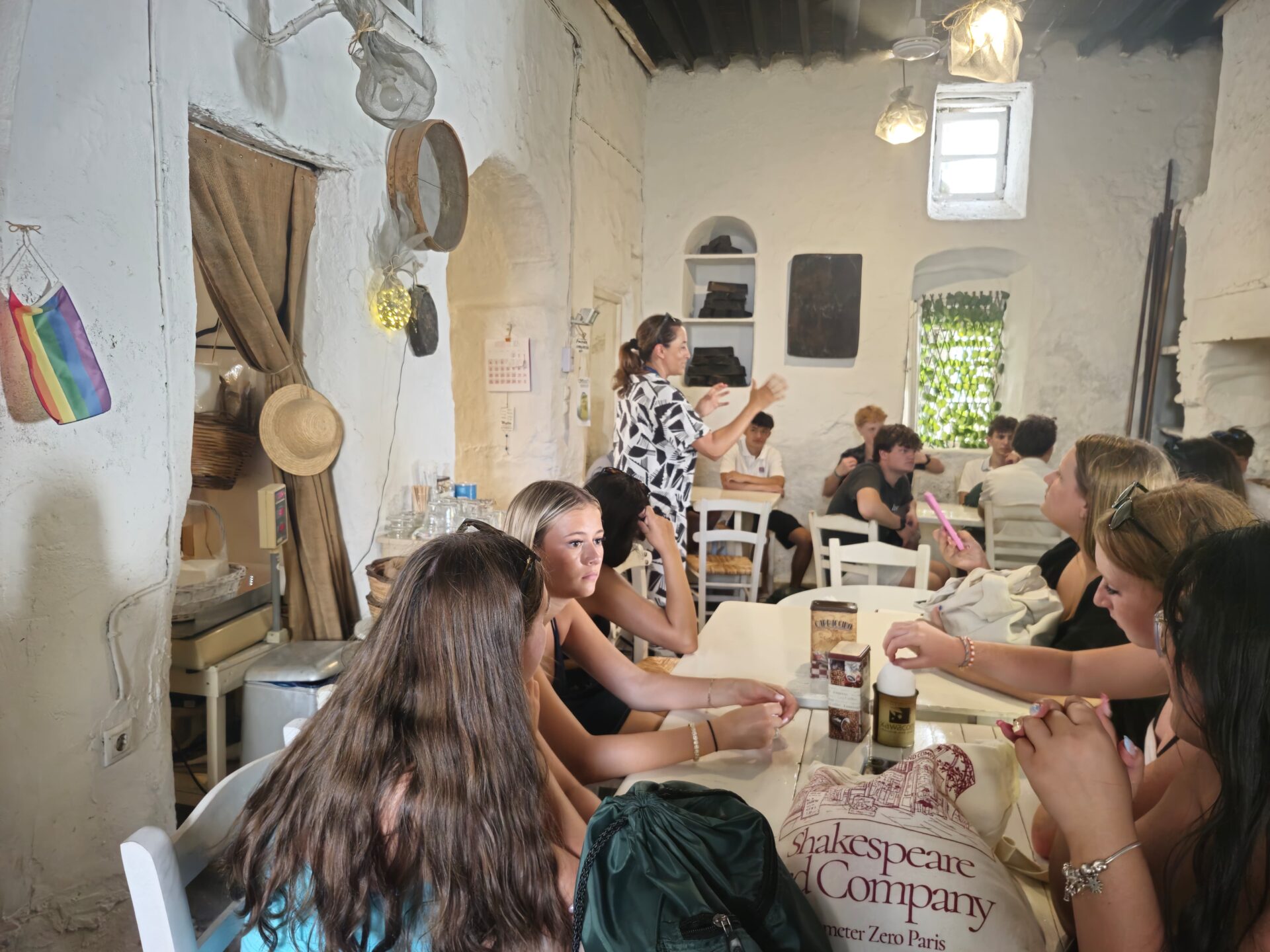 Then it was time for free time. We split into groups of four, and my friends and I set off to explore the town. We went through the maze-like alleys. Most shops were what you would expect—touristy shops with evil eyes and fridge magnets. But we also found a small local store that offered handmade jewelry and clothing. The restaurants were amazing, and they offered authentic Greek food that you couldn’t find anywhere else. I ended up buying a handmade necklace for my mom, as well as some other small gifts for the rest of my family. Some of my friends ended up buying matching watches, while others only went for the food!