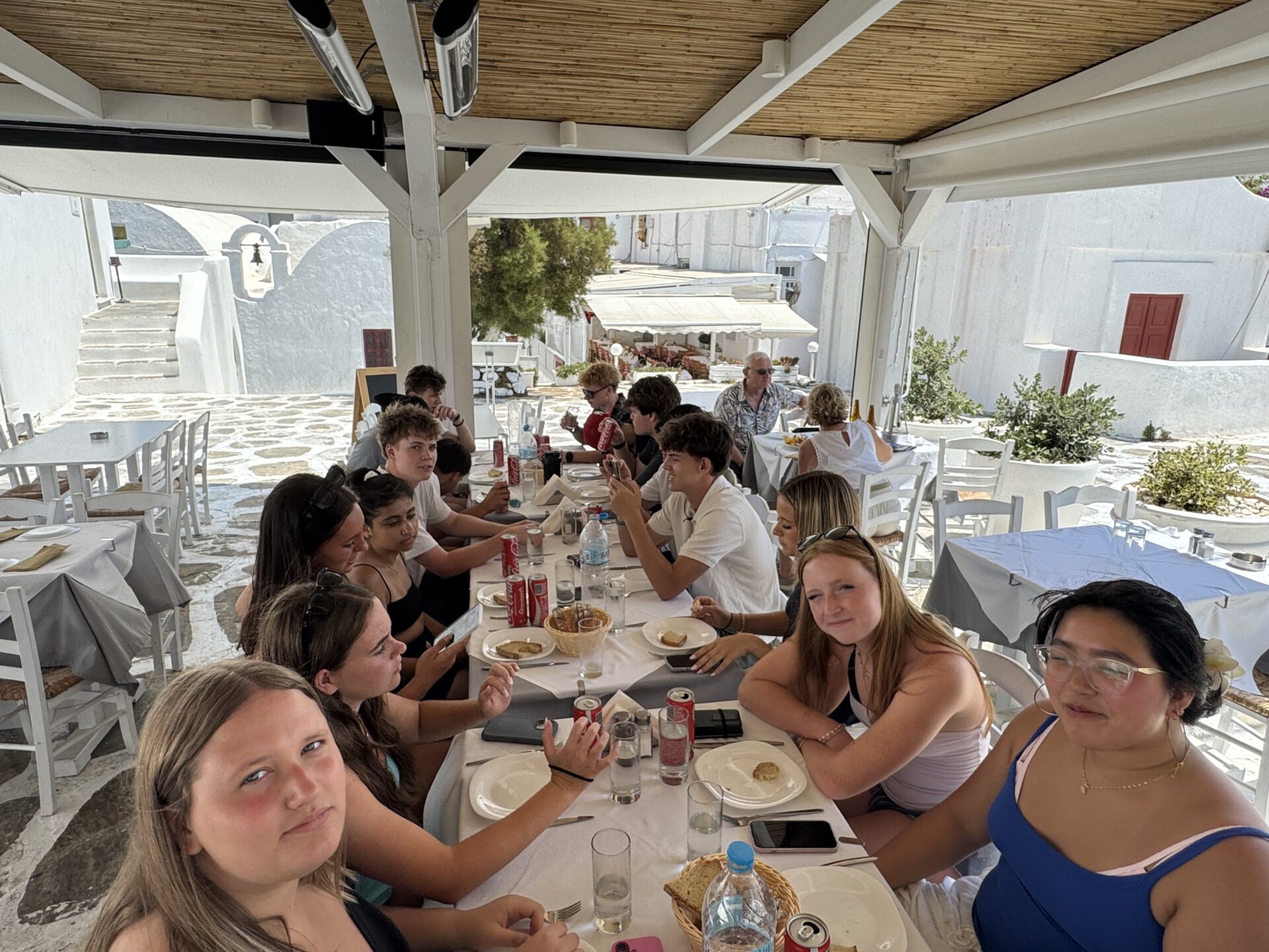 We boarded the bus back to the ferry and chatted as a class about the day, playing some fun “get to know everyone” games. Everyone was exhausted at the end of the day but happy about the day. Once we got back to Syros, it was one last bus ride to Dolphin Bay and then dinner at the buffet where we had our final meal of the day. After such a packed day, we signed back in with our teachers and headed up to our rooms for the night.
