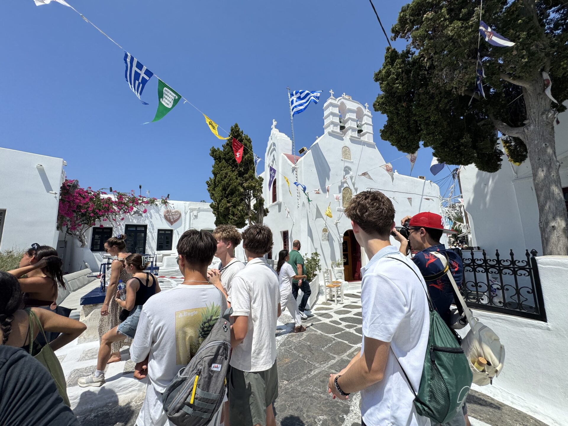Today we were very excited for our optional excursion to Mykonos! Half the students joined us for this exciting journey to one of the most popular islands in Greece! Today’s blog is brought to you by William in Ms. Amelio’s English class.