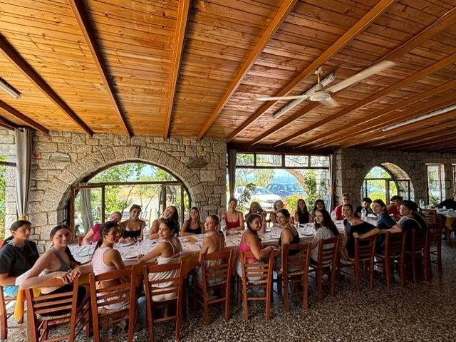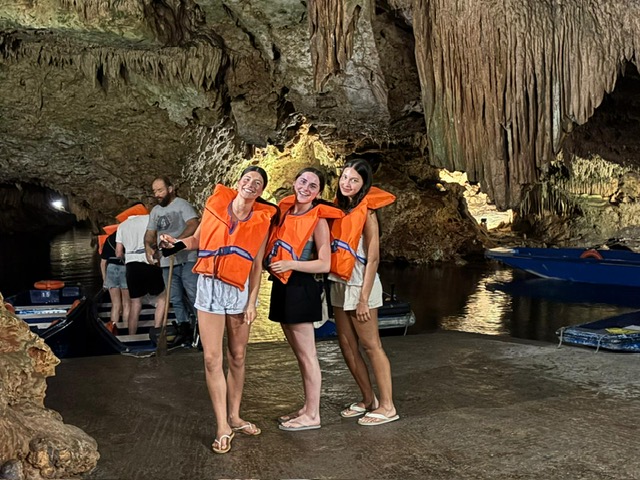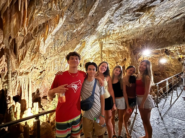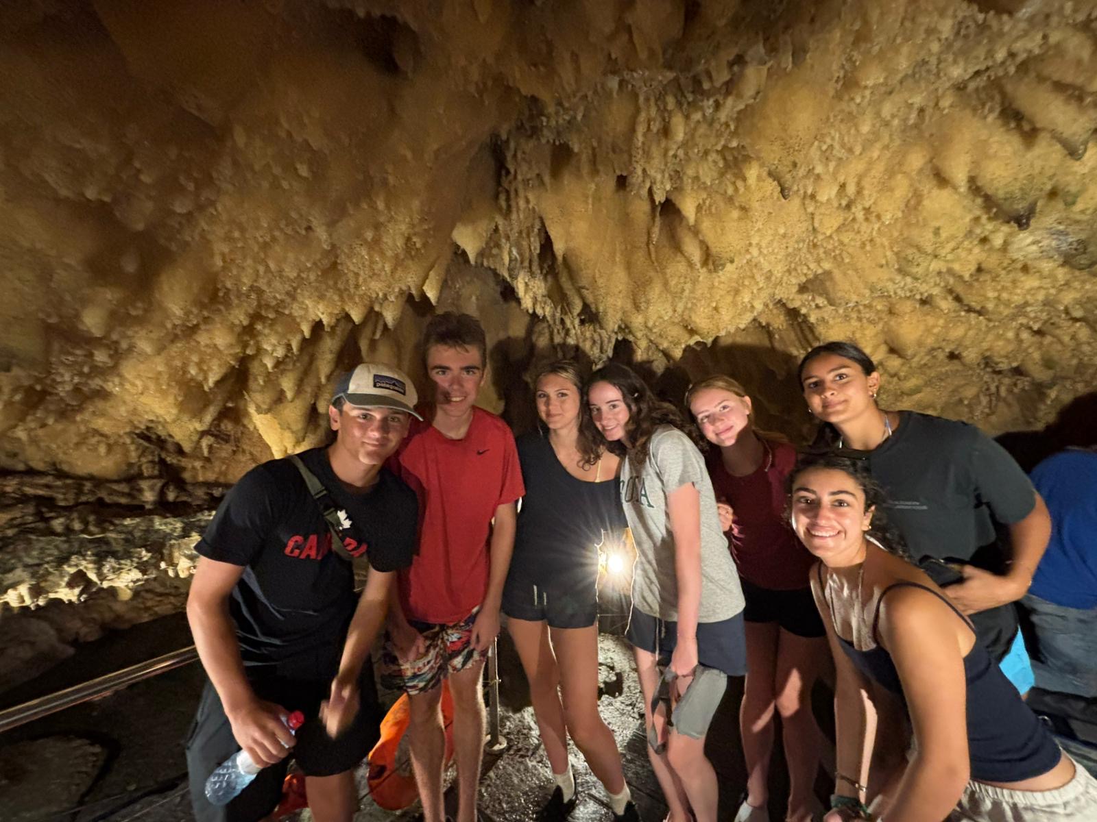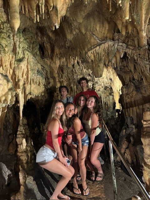 The Diros Caves was a very popular optional excursion for our Rome/Greece program. Students traveled on a cool coach bus to the caves where they got a guided tour. As you can see from the pictures, the site was amazing and at times a little tight fitting! Students then enjoyed a very authentic Greek lunch at a local restaurant. On the way back the stopped at Pantazi beach for a swim and a sun soak before heading back for dinner with the rest of the group. Students not going on the excursion to the cave, enjoyed a relaxing day at the resort doing homework, swimming, and going for lunch in a group of 4 into town.