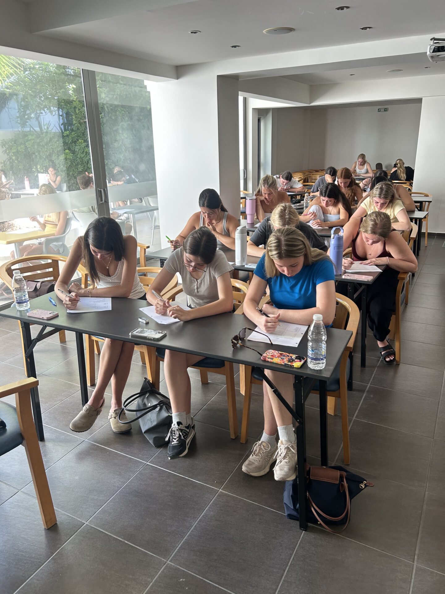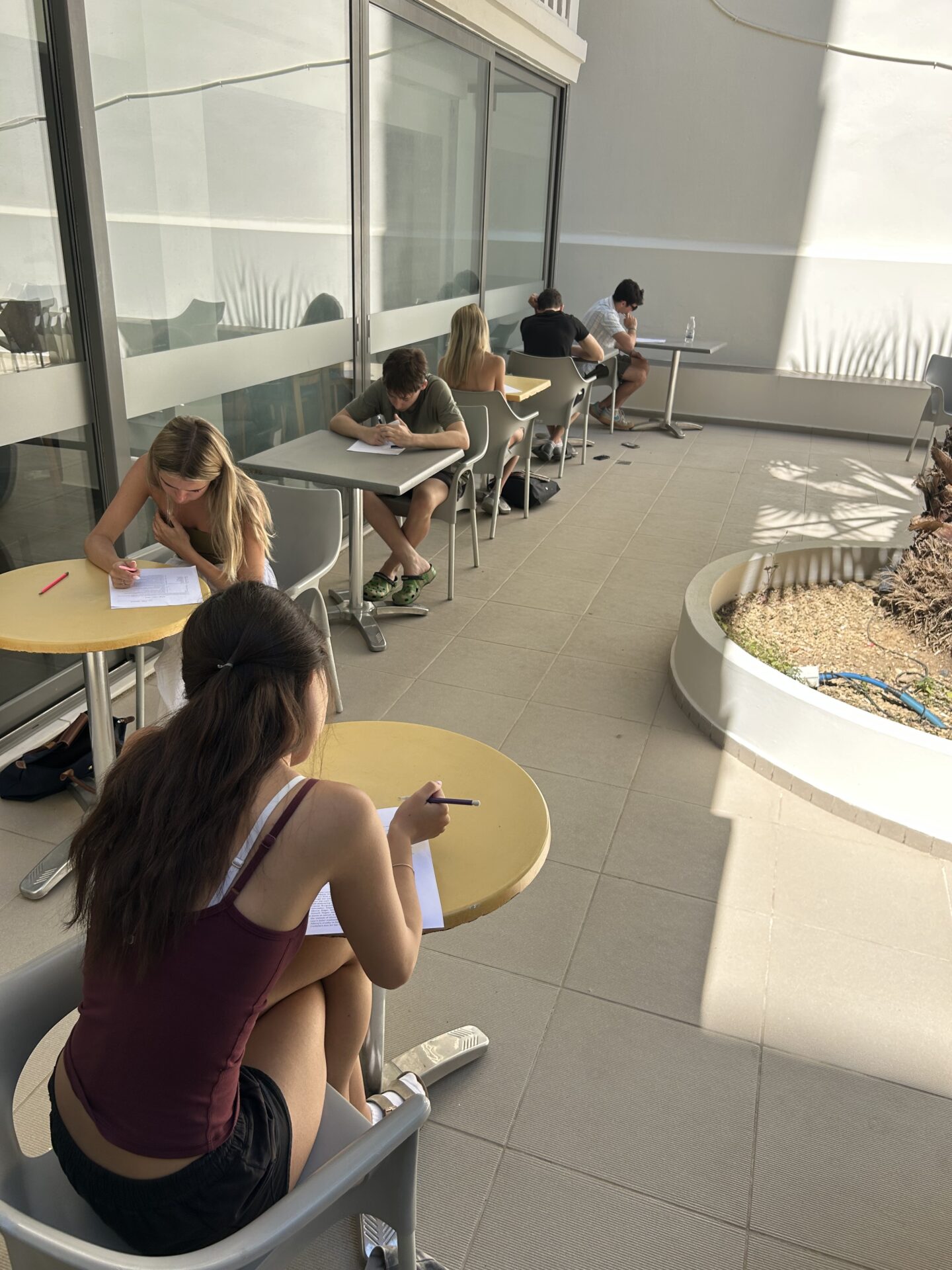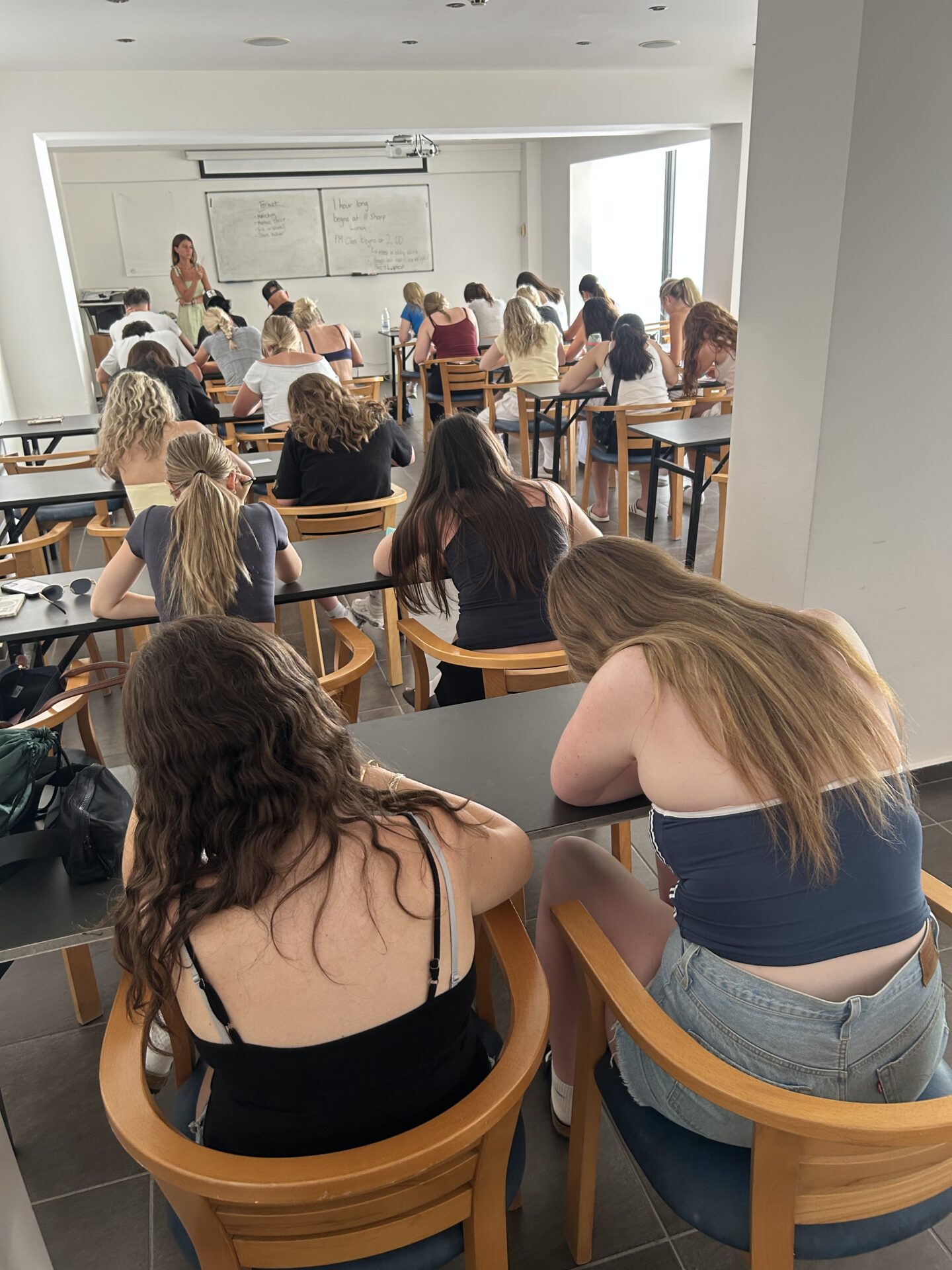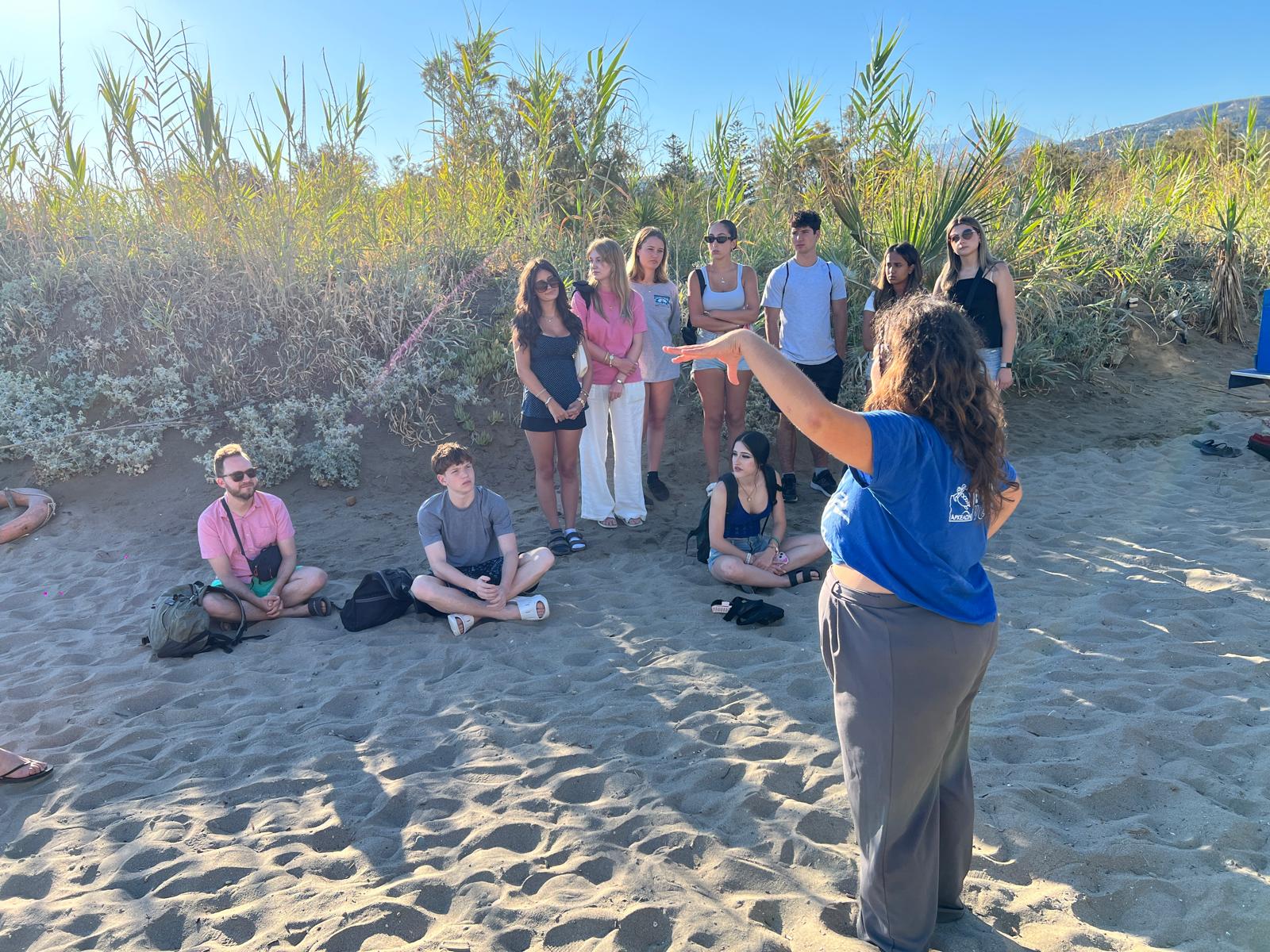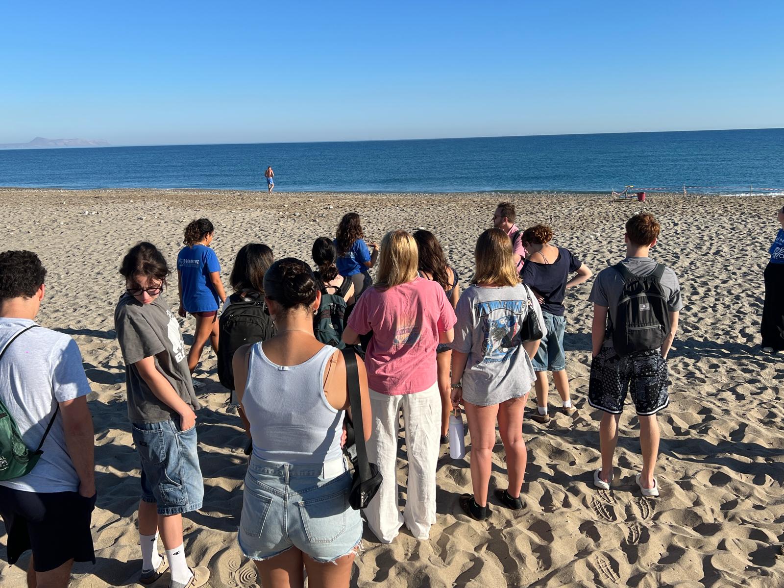 Today was a whirlwind of activities! Biology students had a unique opportunity to visit the Sea Turtle Protection Society of Greece, learning firsthand about conservation efforts. Later, both English and Biology classes faced their first tests, putting their knowledge to the test. As evening approached, some students unwinded with an outdoor cinema experience, watching Jurassic Park. To cap off the day, we all enjoyed a beautiful sunset swim and watched the sunset, followed by a fun-filled volleyball game on the beach.