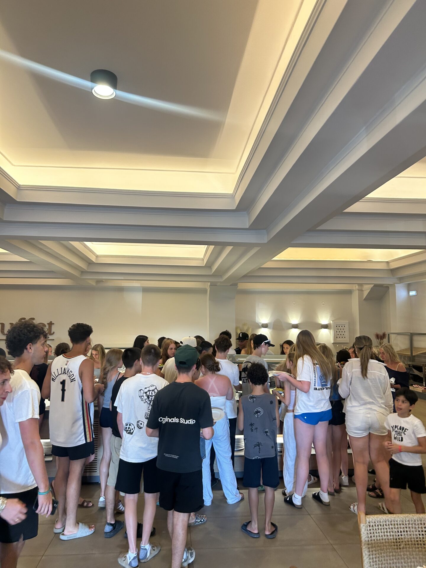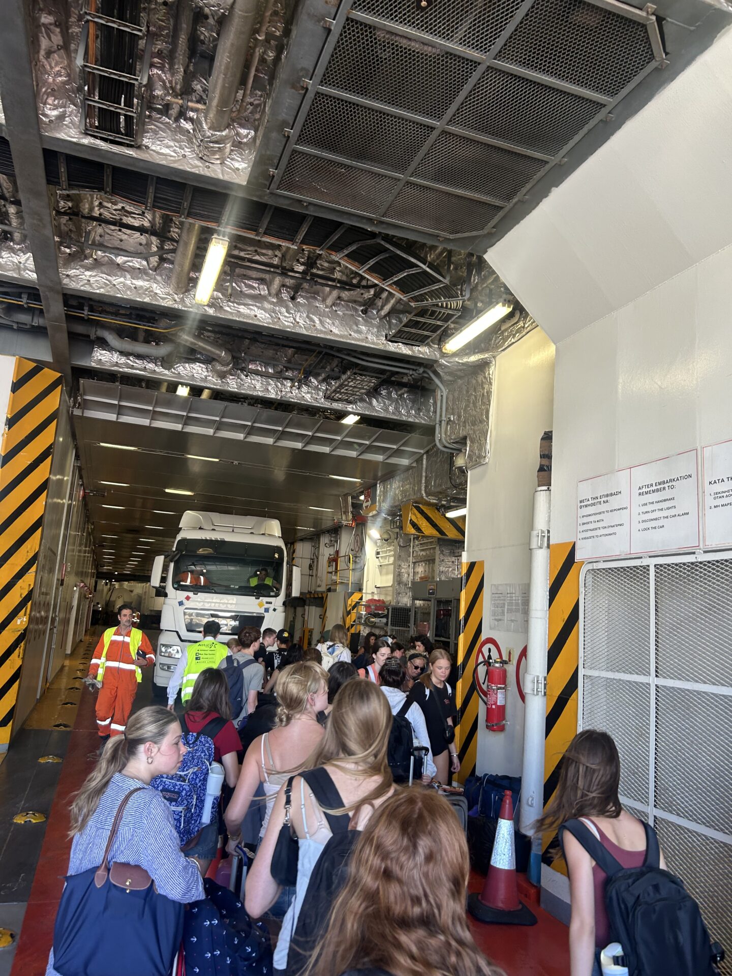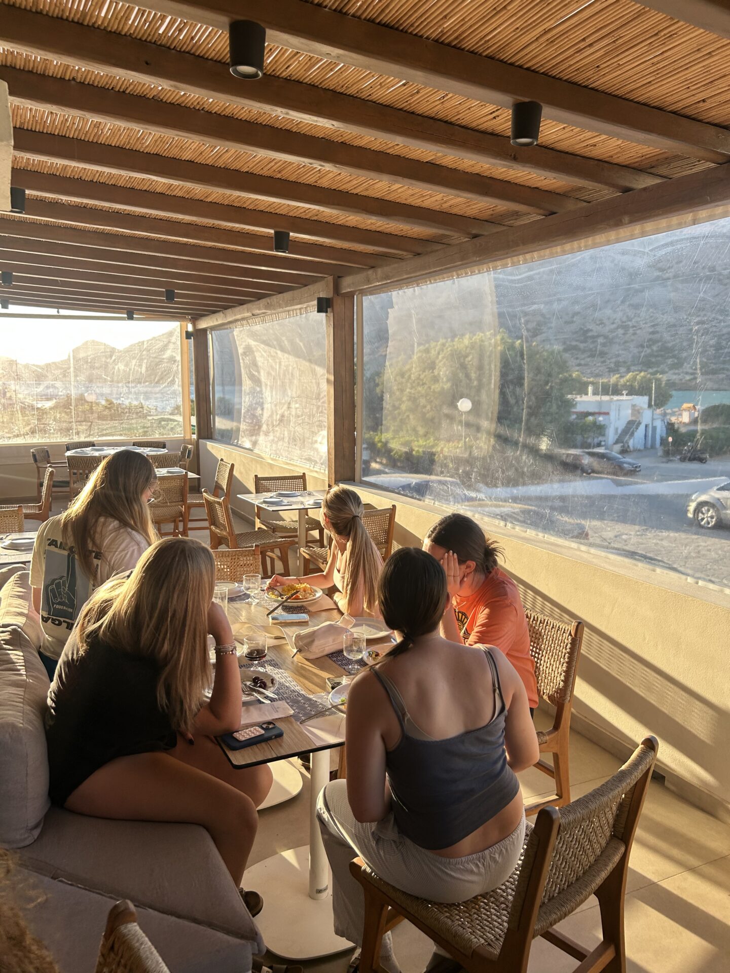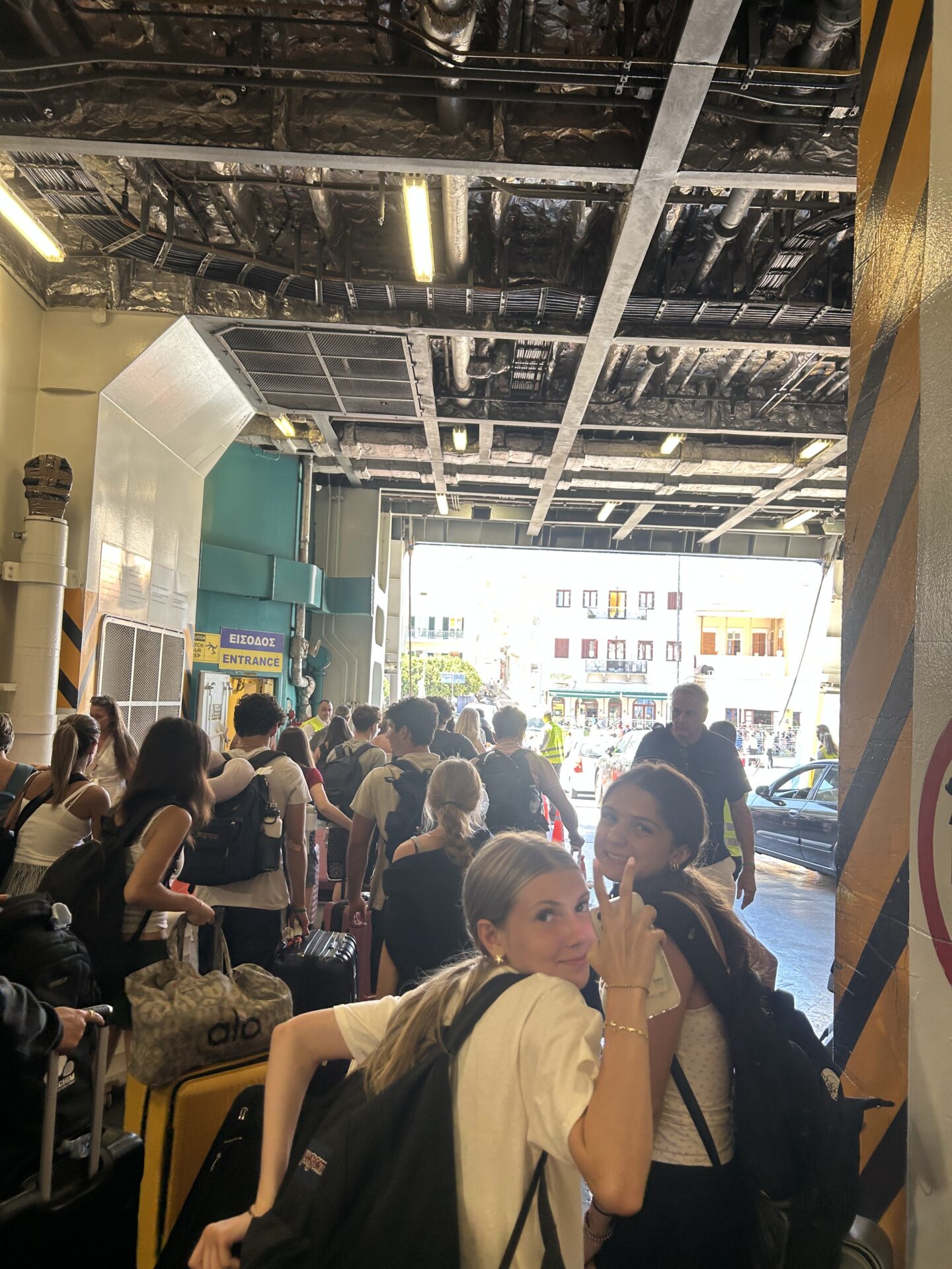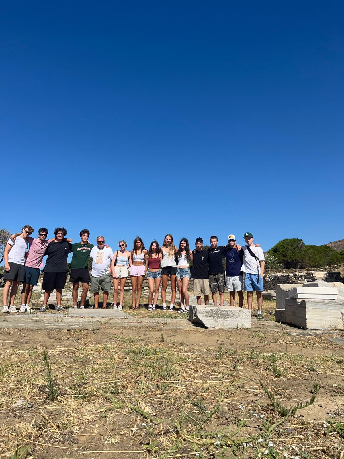 The day started with students waking up for breakfast and getting ready for room checks, excited for their morning classes before we departed. In English, the students were introduced to poetry. At the same time, Dr. Flaherty’s class visited the Archaeological Museum of Tinos, while the biology students explored photosynthesis and anaerobic respiration. After lunch, we headed to the ferry, setting off for the island of Syros. The students were fantastic during our travels, which made for a smooth and easy day. Everyone was thrilled when we arrived at the hotel, where they had time to unpack, freshen up before dinner, and then relax with some free time to explore the area.