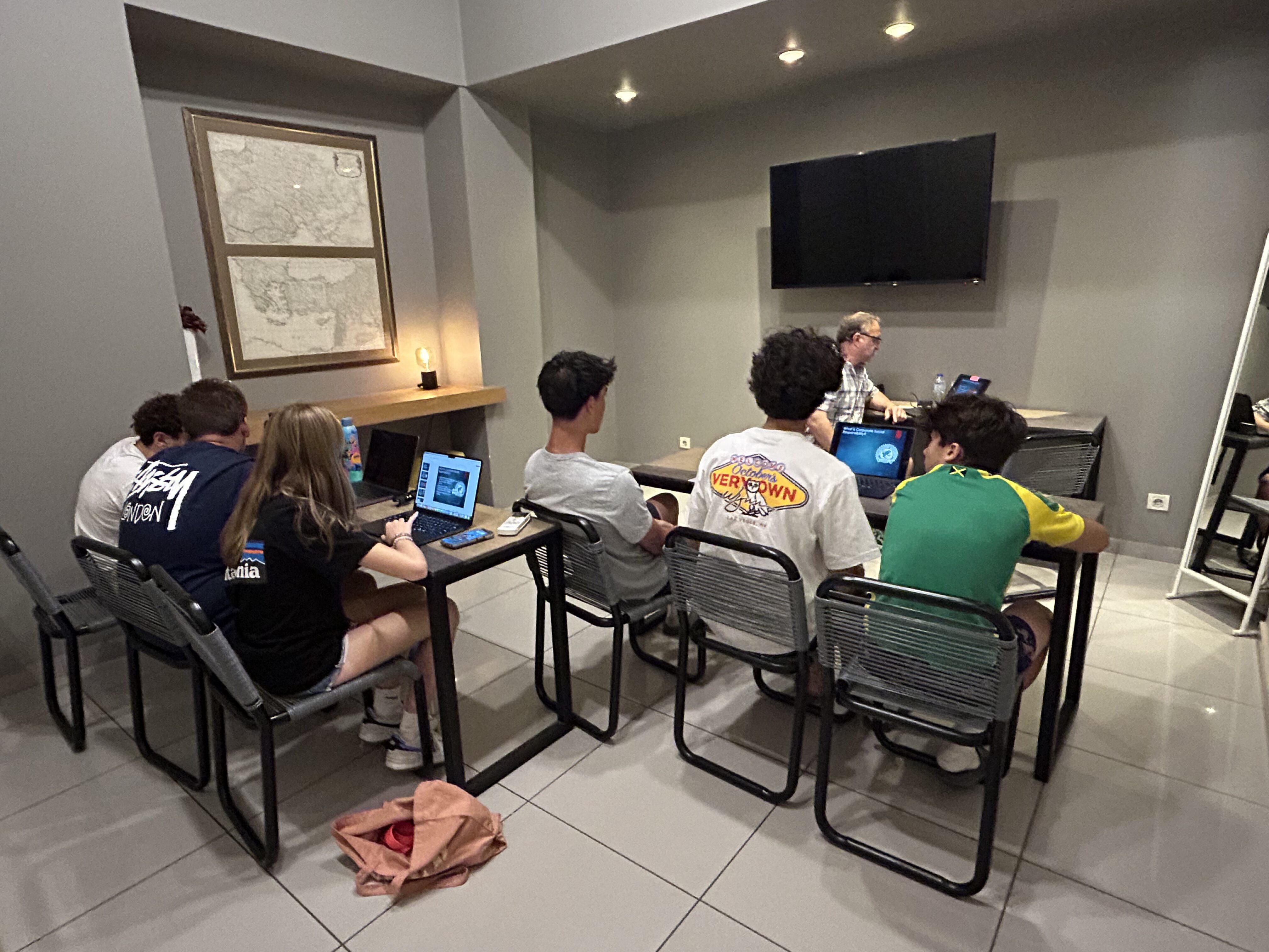 Our students are putting in focused effort this morning, finding quiet, comfy corners throughout the hotel to get their work done. From cozy armchairs to tucked-away tables, they’ve created their own little study spaces—motivated by the beach day waiting for them this afternoon. It’s all about balance: hard work first, then well-deserved fun in the sun!